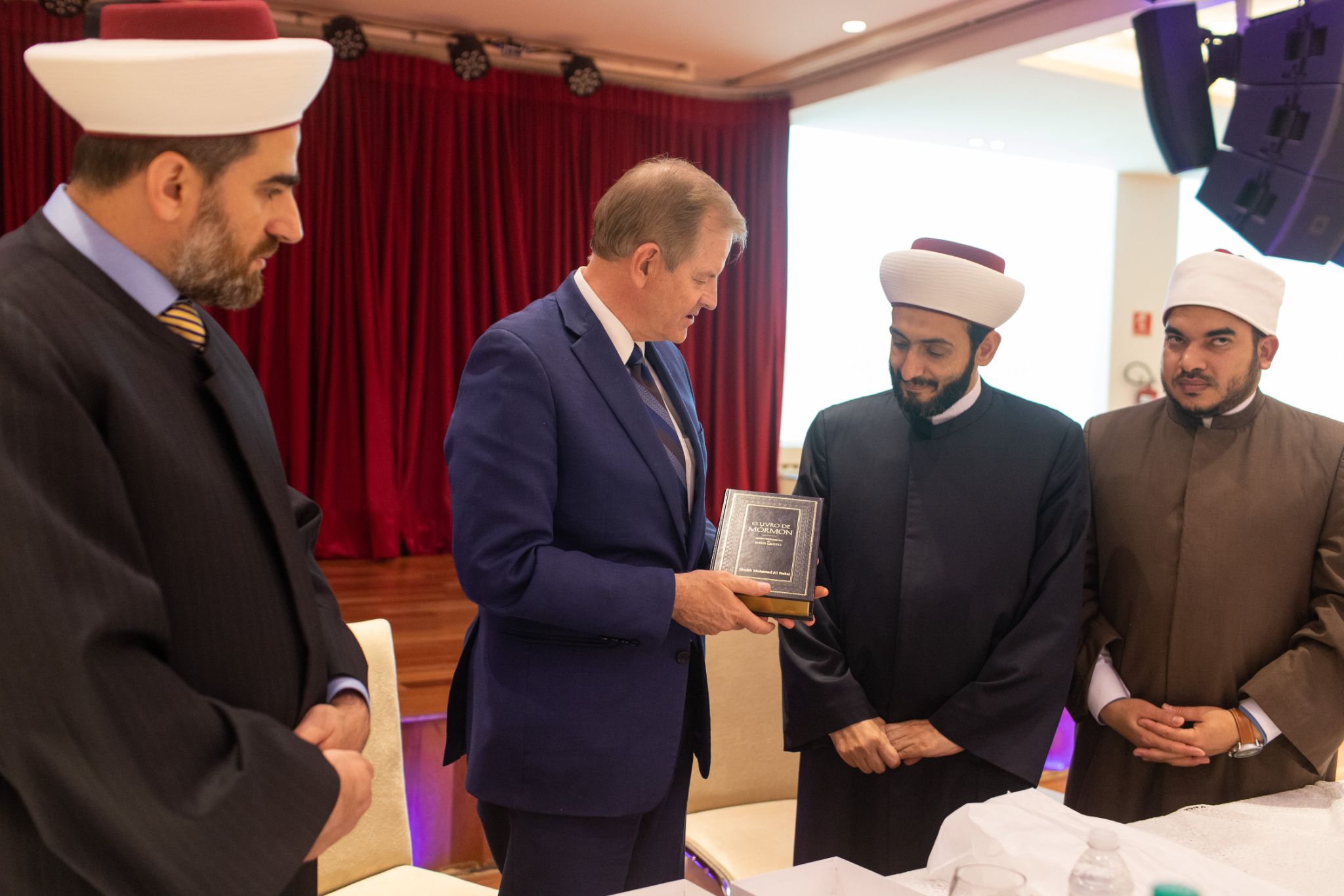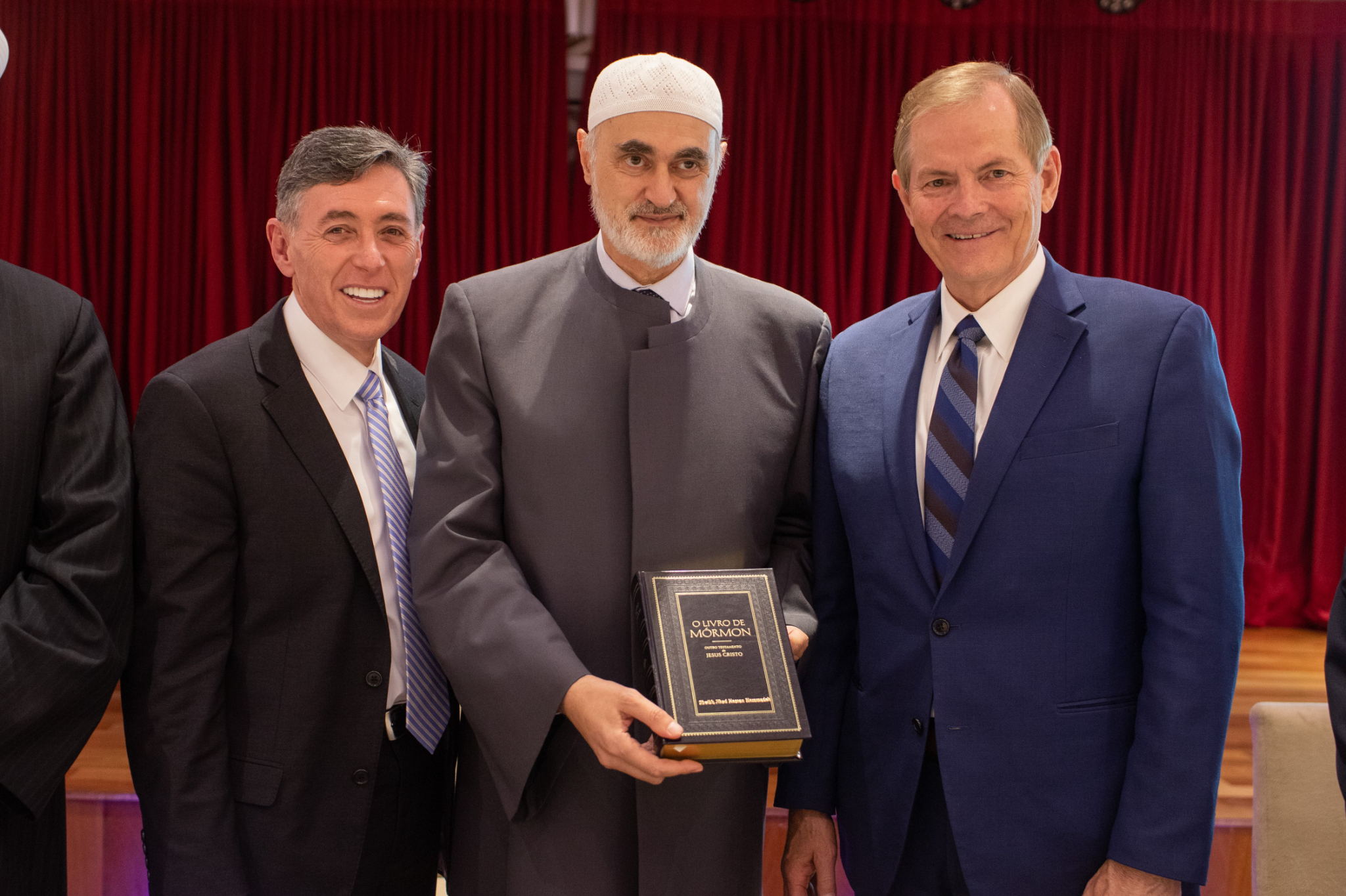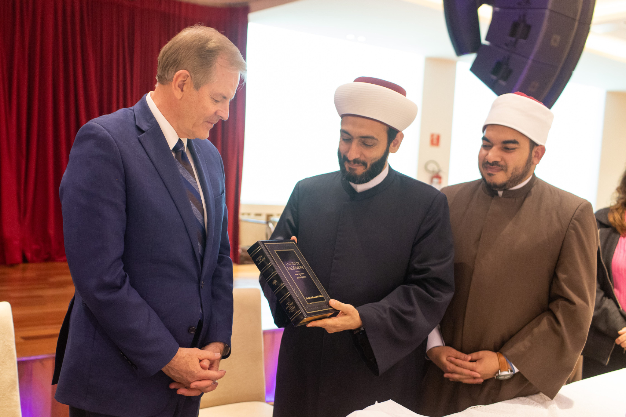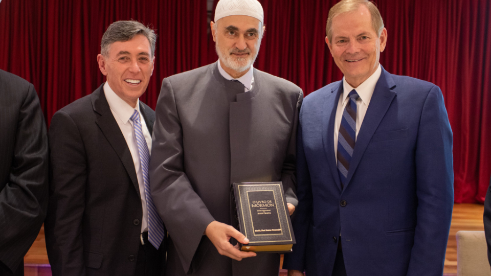 Elder Stevenson also went to the Mesquita Brasil mosque, the site of the first mosque in Brazil. He met with Sheikh Mohamad Al Bukai, director of Islamic Affairs of the National Union of Islamic Entities of Brazil, and Sheikh Jihad Hammadeh of the Abu Bakr Mosque. While visiting the mosque, Elder Stevenson discussed the commonalities of Muslim and Latter-day Saint beliefs, using a pamphlet produced by the Church entitled “Muslims and Latter-day Saints: Beliefs, Values, and Lifestyles”.