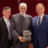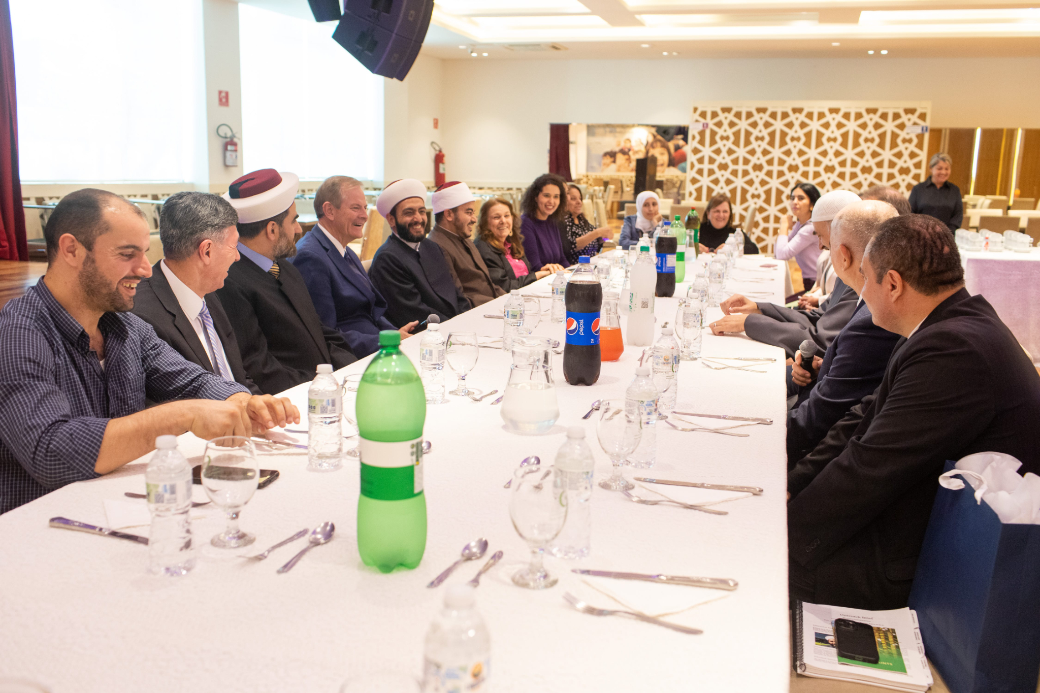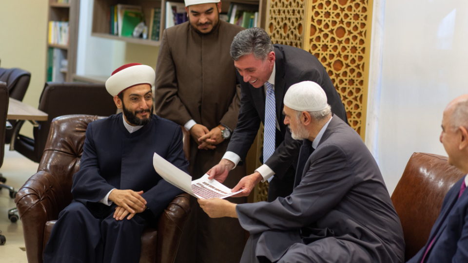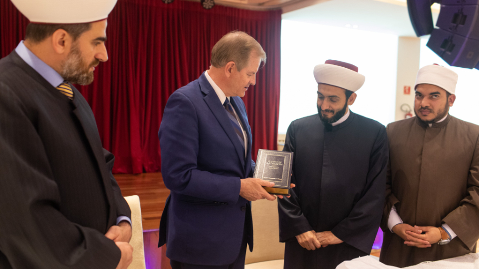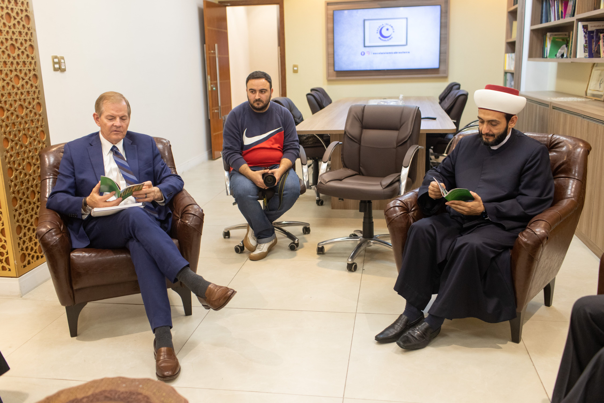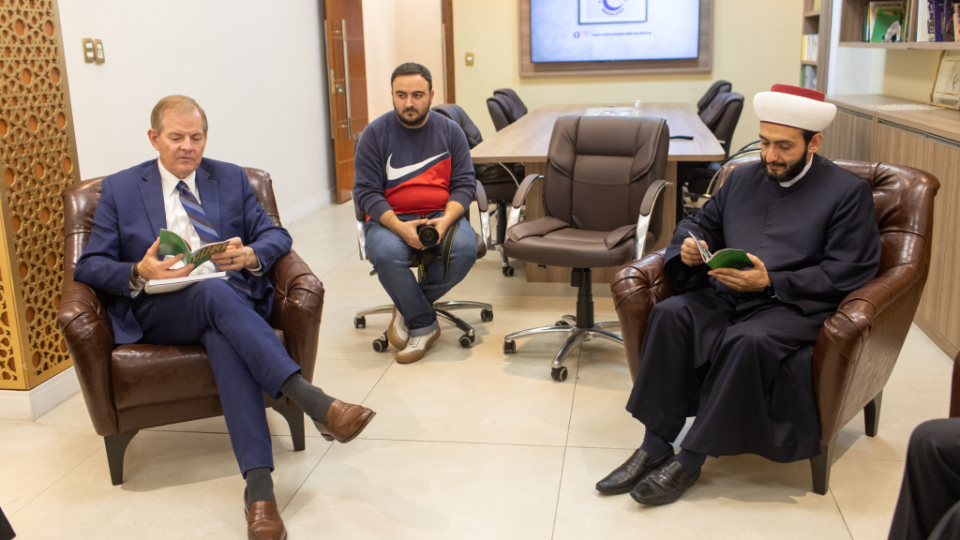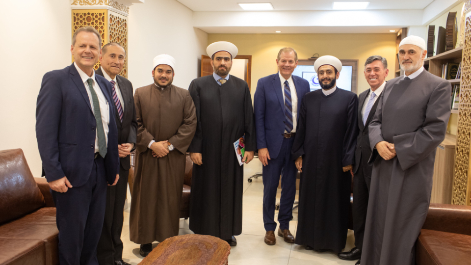 Elder Stevenson also went to the Mesquita Brasil mosque, the site of the first mosque in Brazil. He met with Sheikh Mohamad Al Bukai, director of Islamic Affairs of the National Union of Islamic Entities of Brazil, and Sheikh Jihad Hammadeh of the Abu Bakr Mosque. While visiting the mosque, Elder Stevenson discussed the commonalities of Muslim and Latter-day Saint beliefs, using a pamphlet produced by the Church entitled “Muslims and Latter-day Saints: Beliefs, Values, and Lifestyles”.