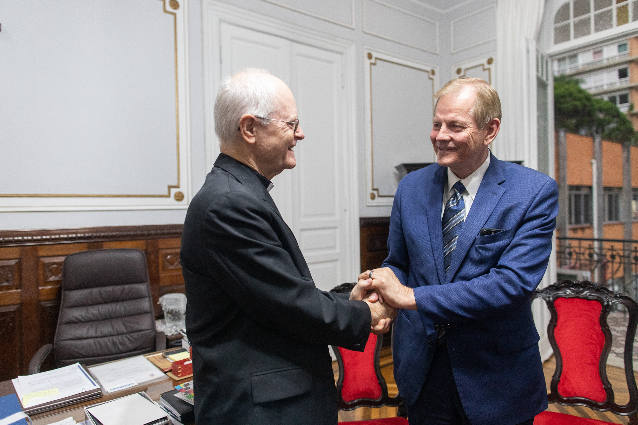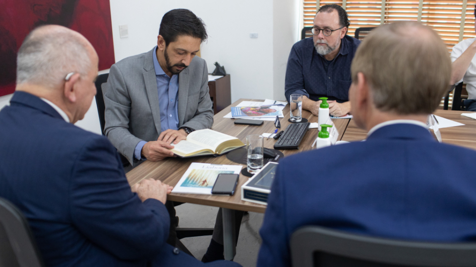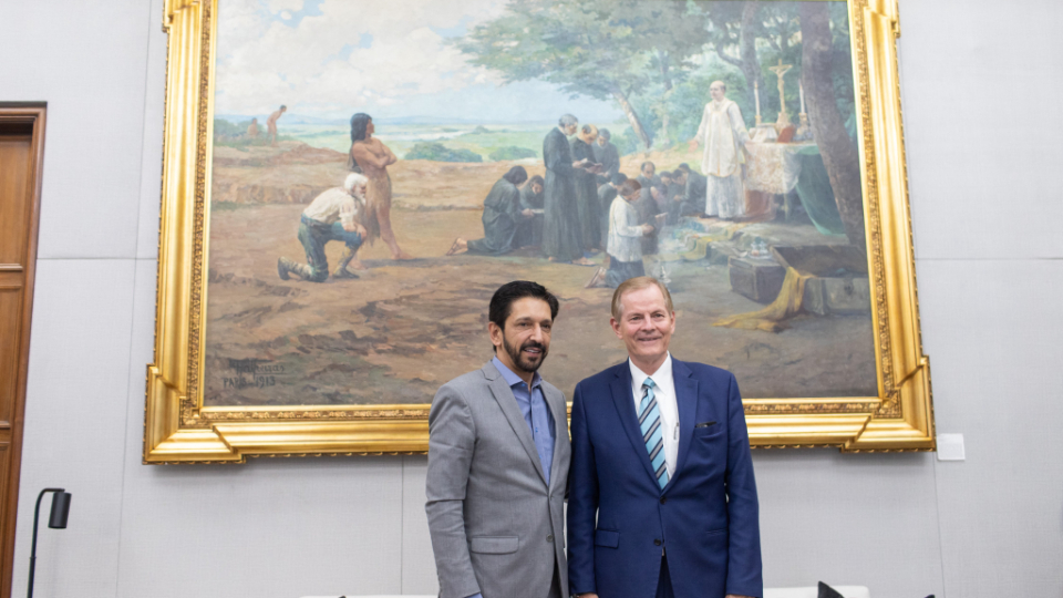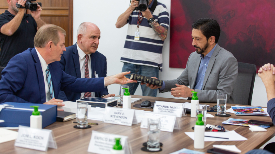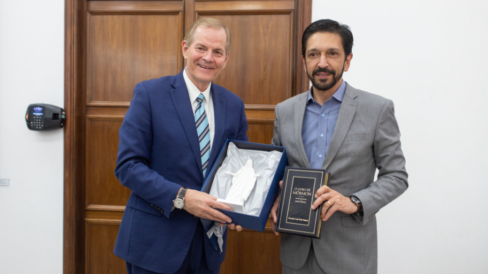 At Elder Stevenson’s final stop in São Paulo, he met with Mayor Ricardo Nunes in his office at city hall. Mayor Nunes expressed appreciation and admiration for the Church of Jesus Christ and its humanitarian work. The Church has helped thousands of people in the city of São Paulo.