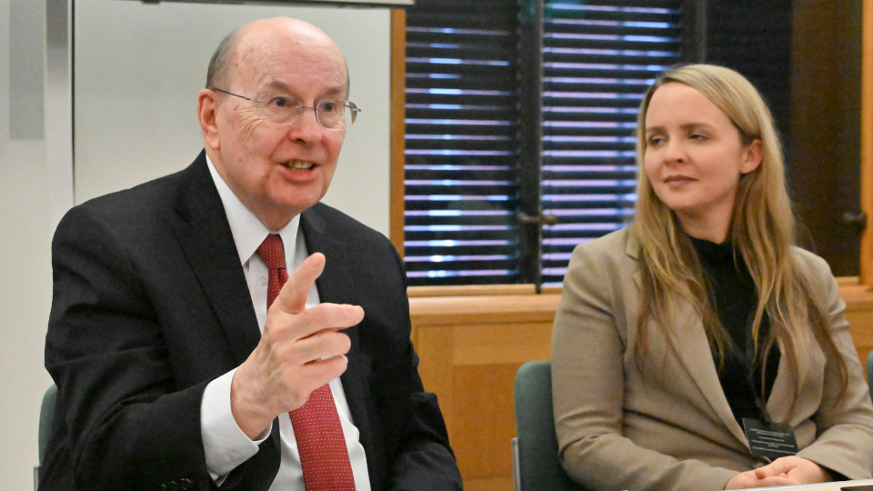 Elder Quentin L. Cook of the Quorum of the Twelve Apostles speaks with Parliament member David Rutley and other participants of the forum discussion on religious freedom, in the Palace of Westminster in London, England, Wednesday, December 6, 2023.2023 by Intellectual Reserve, Inc. All rights reserved.In a subsequent question-and-answer session, Elder Cook said he was optimistic for the future of religious freedom. But in cautioning against absolute applications in issues involving the separation of church and state, he quoted President Dallin H. Oaks, first counselor in the First Presidency. “This is not a call for doctrinal compromises,” President Oaks said, “but rather a plea for unity and cooperation on strategy and advocacy toward our common goal of religious liberty for all.”