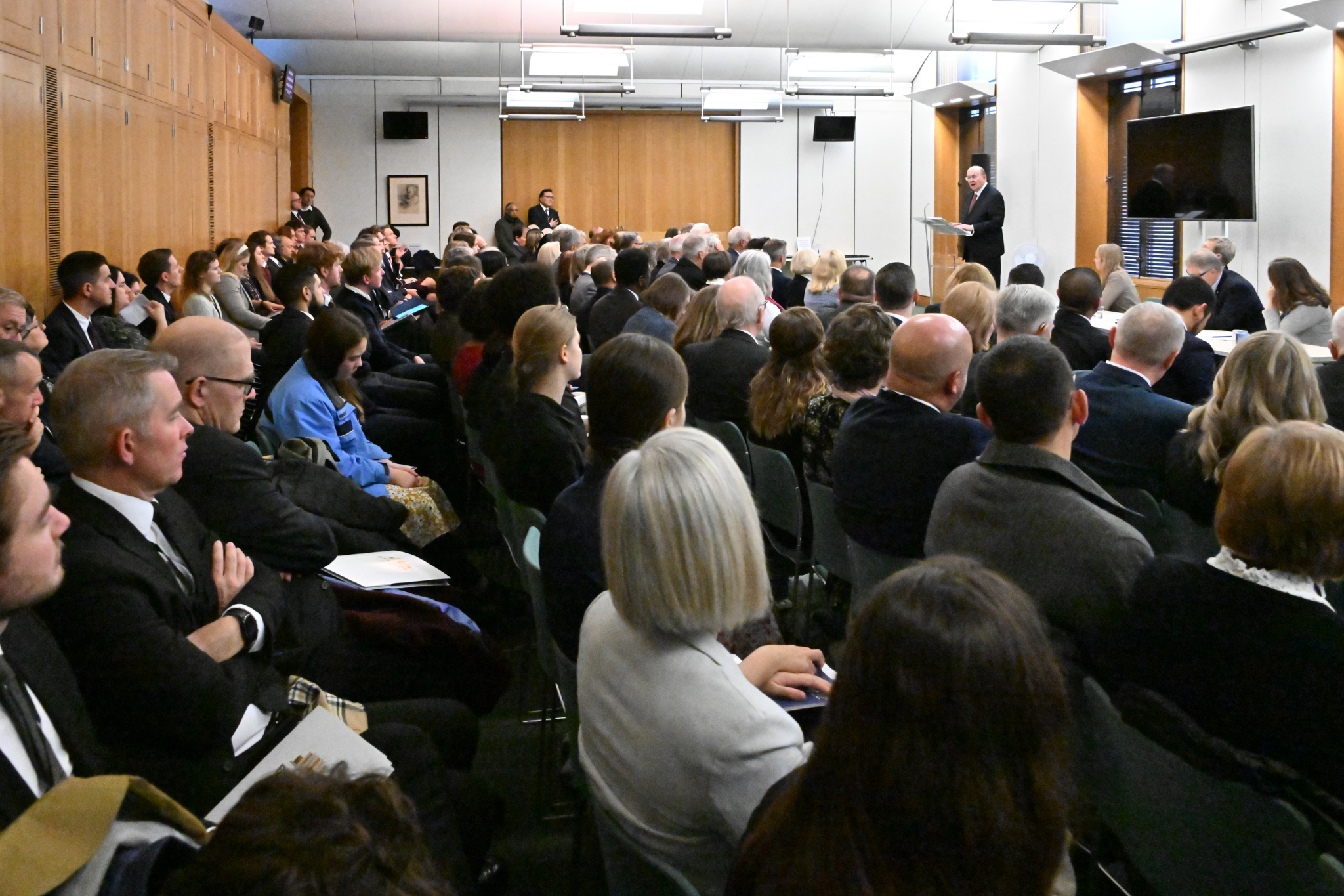 Accompanied by his wife, Mary, Elder Cook provided the keynote address in a morning session in the Portcullis House of the Palace of Westminster. Also offering remarks were U.K. Prime Minister’s Special Envoy for Freedom of Religion or Belief Fiona Bruce, a member of Parliament; Parliament member Brendan O’Hara, a leader of various All Party Parliamentary Groups, including that of International Freedom of Religion or Belief; professor Stephanie Barclay, director of Notre Dame Law School’s Religious Liberty Initiative; and professor Brett Scharffs, director of the Brigham Young University Law School’s International Center for Law and Religion Studies.