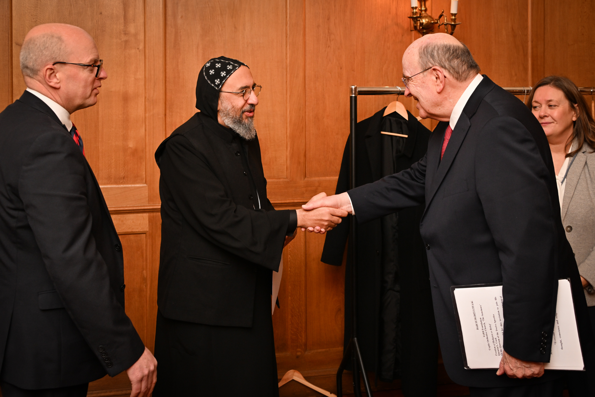Archbishop Angaelos of London Coptic Orthodox Church greets Elder Quentin L. Cook of the Quorum of the Twelve Apostles and Matthew Jones of the FoRB Foundation (left) following their remarks about religious freedoms and civil liberties during a meeting to discuss the issues at The Sanctuary (Coptic Orthodox Church), St. Andrews-by-the-Wardrobe, in London, England, Wednesday, December 6, 2023.2023 by Intellectual Reserve, Inc. All rights reserved.The Apostle saluted William Wilberforce — “my personal hero” — and other devoutly religious Christian associates in Great Britain’s history such as Thomas Clarkson, Charles and John Wesley and Hannah More, who each felt an overpowering sense of accountability and responsibility to God. Wilberforce is remembered for being the principal force resulting in Great Britain’s abolition of slavery in 1833.