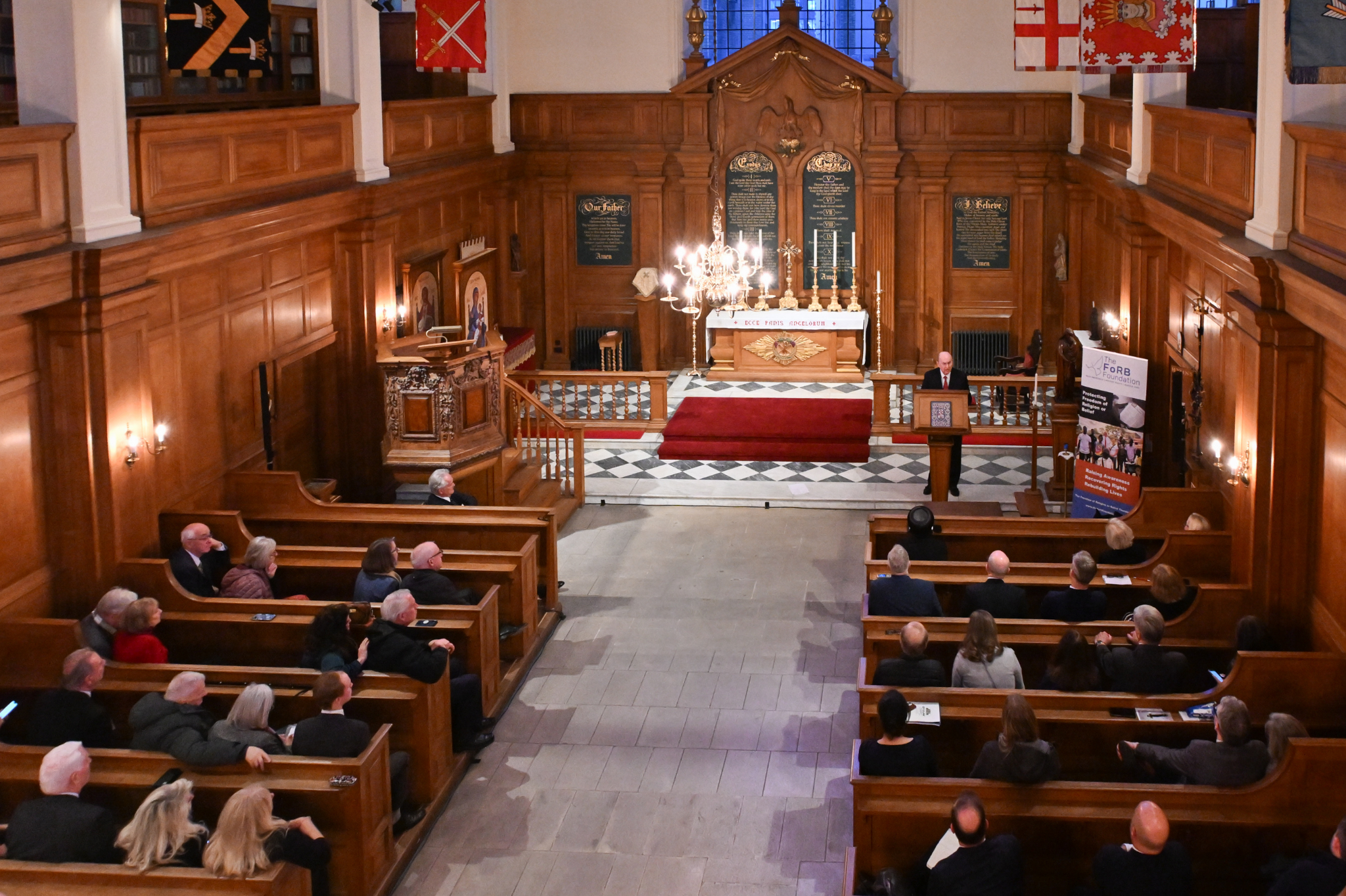 Elder Quentin L. Cook of the Quorum of the Twelve Apostles speaks about religious freedom during a meeting at The Sanctuary (Coptic Orthodox Church), St. Andrews-by-the-Wardrobe, in London, England, Wednesday, December 6, 2023.2023 by Intellectual Reserve, Inc. All rights reserved.Elder Cook quoted the late Rabbi Jonathan Sacks of the United Hebrew Congregations of the British Commonwealth. When addressing how secular parts of the world have become, Rabbi Sacks blamed one culprit as “an aggressive scientific atheism tone-deaf to the music of faith.”