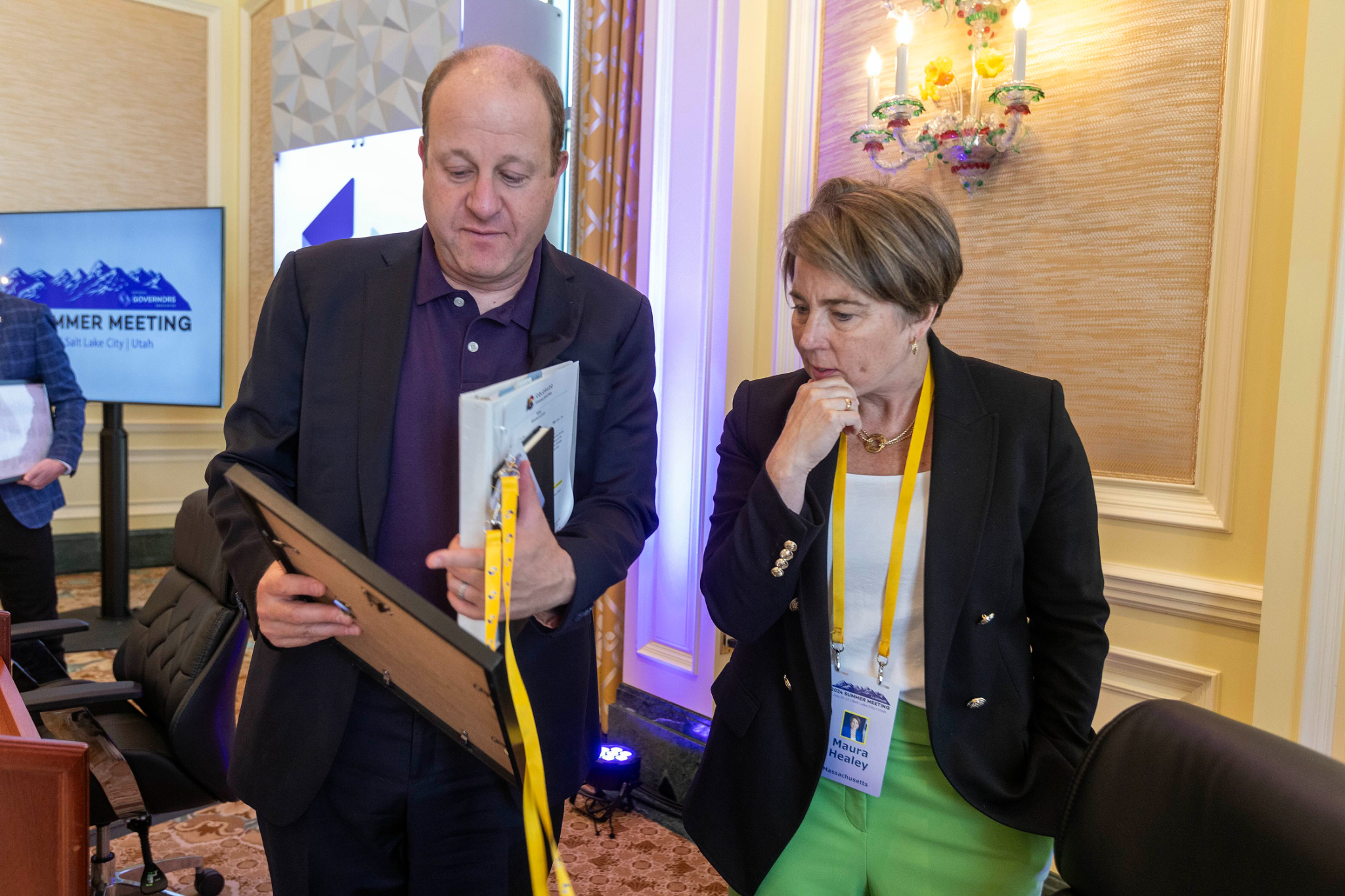 Joined by Elder Paul V. Johnson of the Quorum of the Seventy, he then presented the 12 governors — including the chair of the National Governors Association, Utah Gov. Spencer Cox, and vice-chair, Colorado Gov. Jared Polis — with individual family pedigree charts.