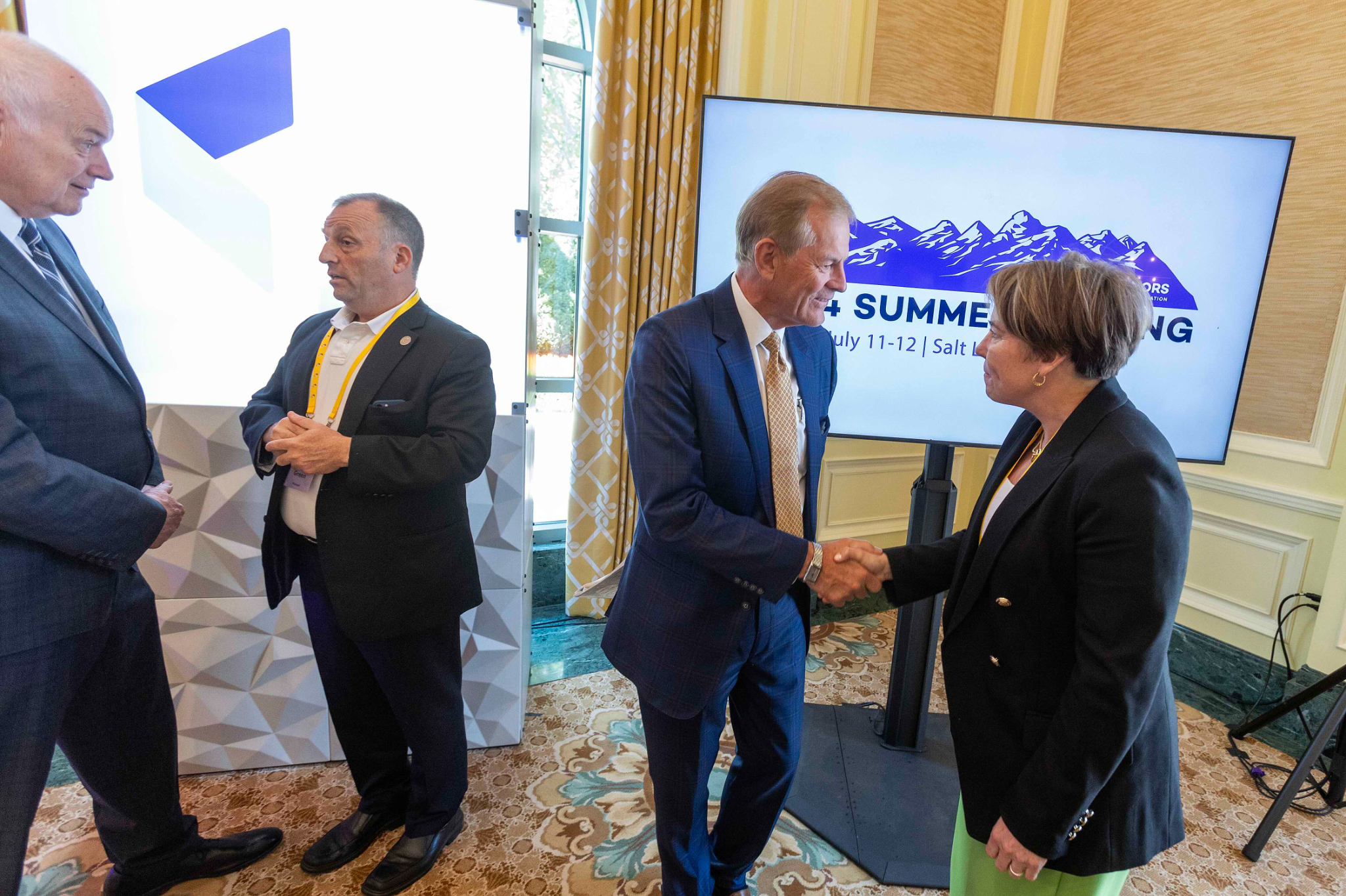 On an invitation from the National Governors Association, Elder Gary E. Stevenson of the Quorum of the Twelve Apostles of The Church of Jesus Christ of Latter-day Saints met with a group of U.S. governors on Thursday, July 11, 2024, at the Grand America Hotel in Salt Lake City, Utah. During his remarks, Elder Stevenson underscored the importance of community service, families and family history.