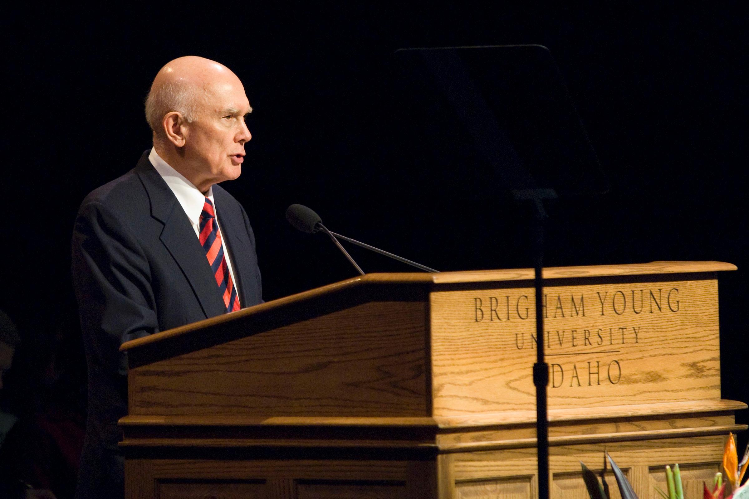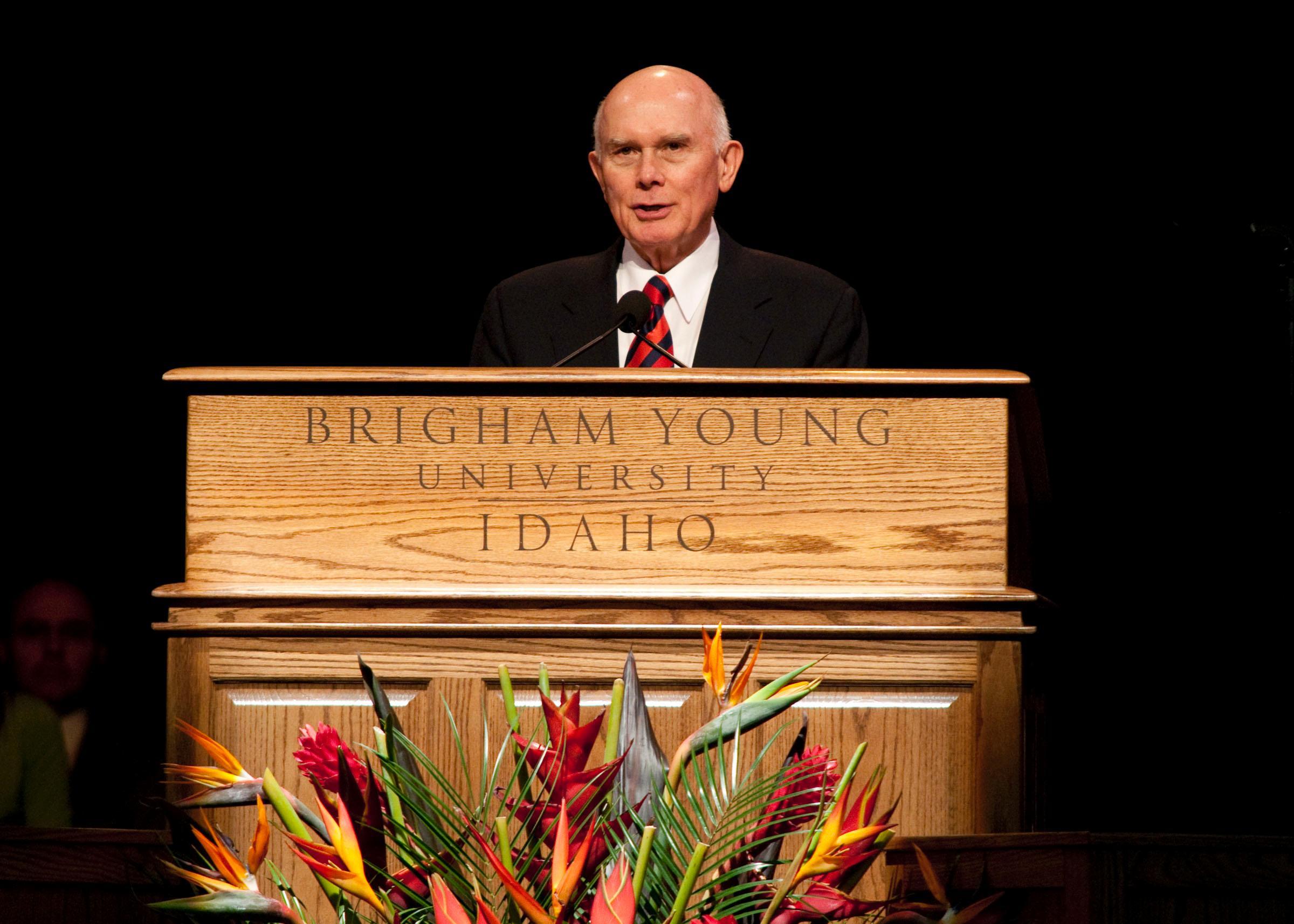 Elder Dallin H. Oaks made the comments today in a major address to Brigham Young University-Idaho students on the importance of preserving the religious freedoms guaranteed by the United States Constitution.