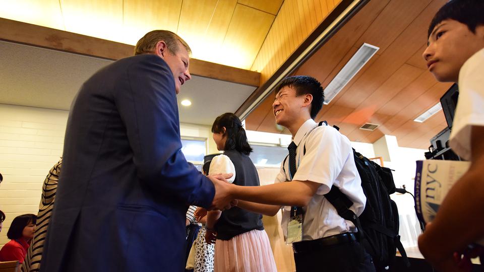 Young Church members in attendance listened as Elder Stevenson spoke entirely in Japanese, a language he first learned as a young missionary.