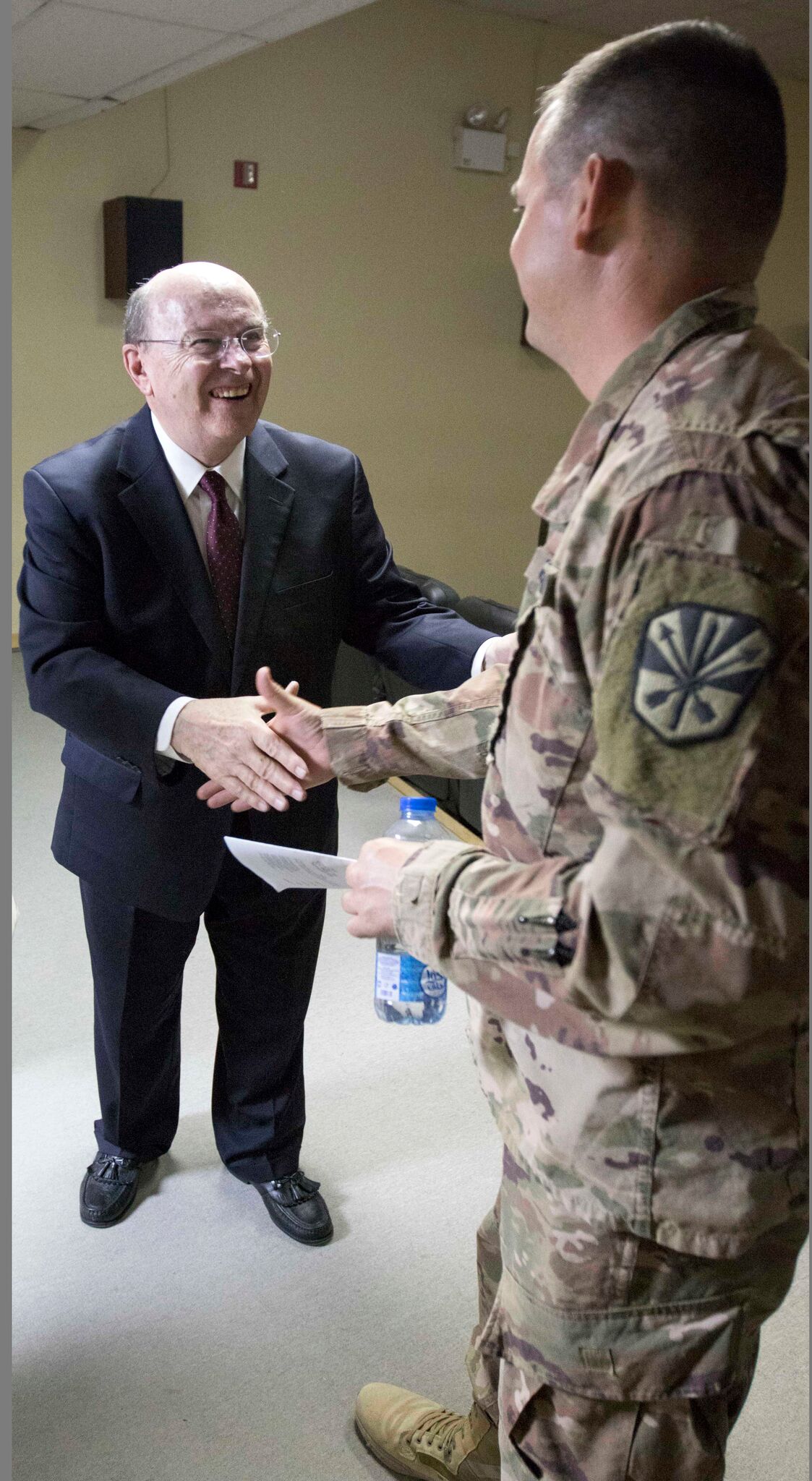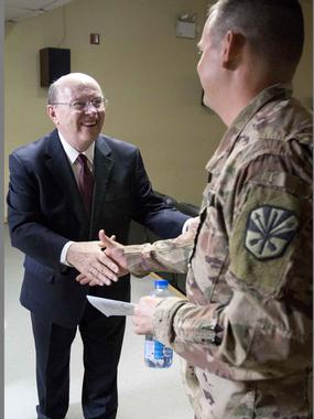 Elder Cook spoke Sunday to 125 soldiers at a sacrament meeting at Camp Arifjan, a U.S. military base outside Kuwait City.