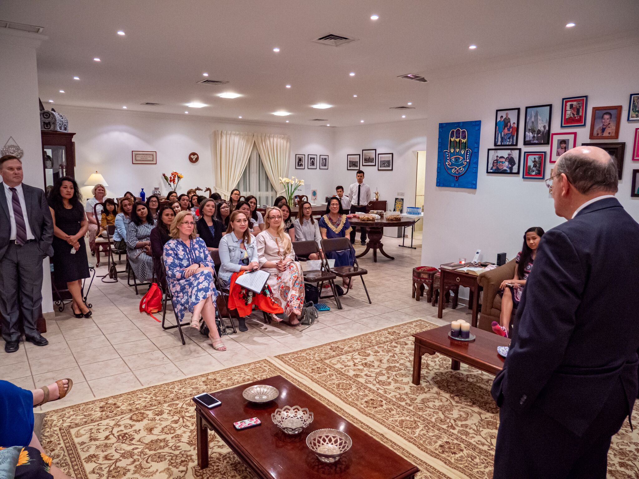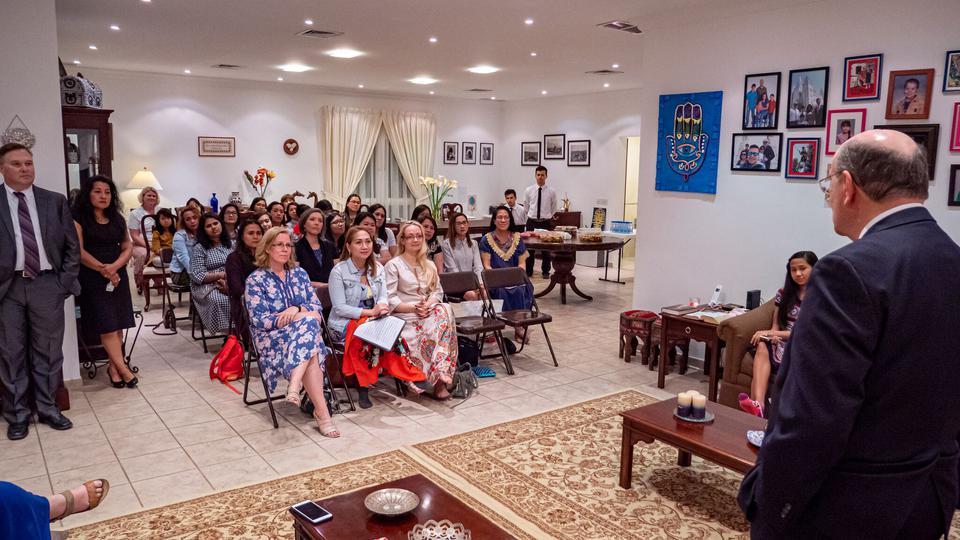 While in Kuwait, Elder and Sister Cook also met with a senior member of the Kuwaiti royal family, Her Excellency Sheikha Intisar Salem al-Ali al-Sabah. On Monday, Elder Cook and other men, including local interfaith leaders, gathered for a traditional diwaniya meeting (an important aspect of social life for Gulf Arab men). Sister Cook and other women also gathered for fellowship.