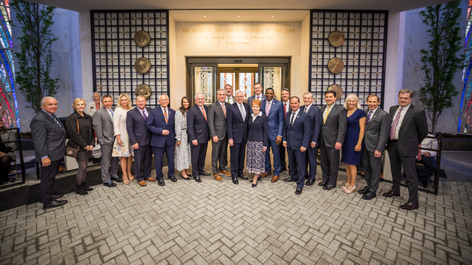 On Monday, 48 years later, that law clerk — now an Apostle of Jesus Christ — was leading 16 United States senators (themselves no strangers to pressure and stress) through the renovated house of the Lord in the nation’s capital.