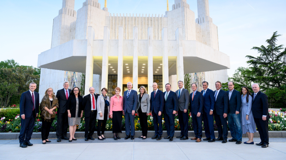 Elder D. Todd Christofferson and his wife, Kathy, pose with several United States senators and other invited guests outside the Washington D.C. Temple on Monday, April 25, 2022.2022 by Intellectual Reserve, Inc. All rights reserved.Another Apostle, Elder Quentin L. Cook, led several United States Supreme Court justices (along with their law clerks and family members) through the temple last week.