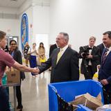 He also had the opportunity to meet with leaders representing both Church and community groups at The Welcome Center, the former Ann Ott Elementary School, which has been converted into a dedicated facility that houses migrants.