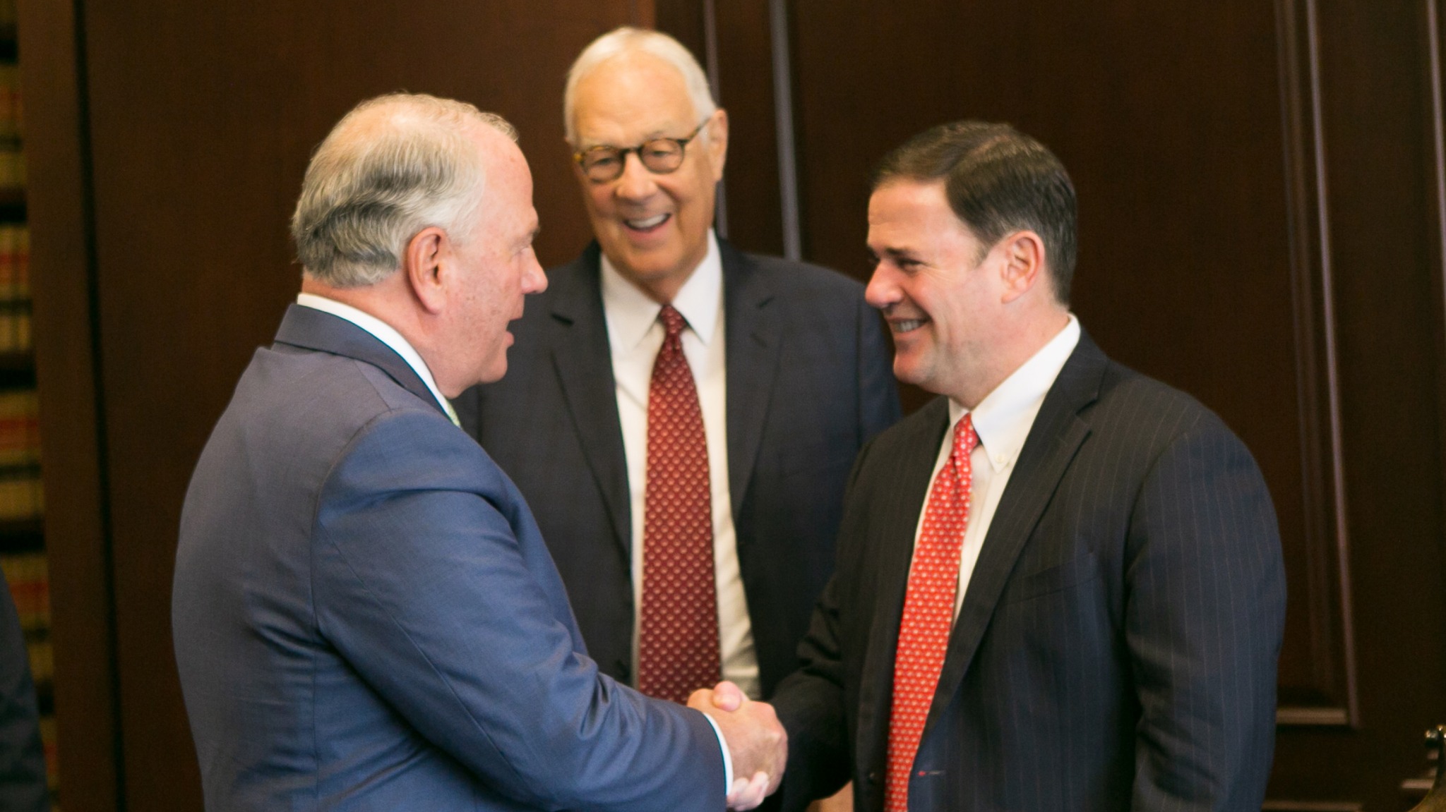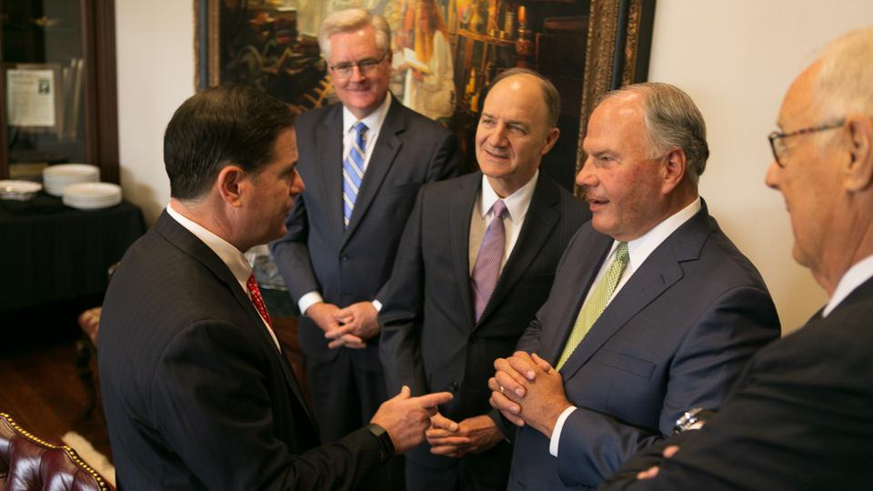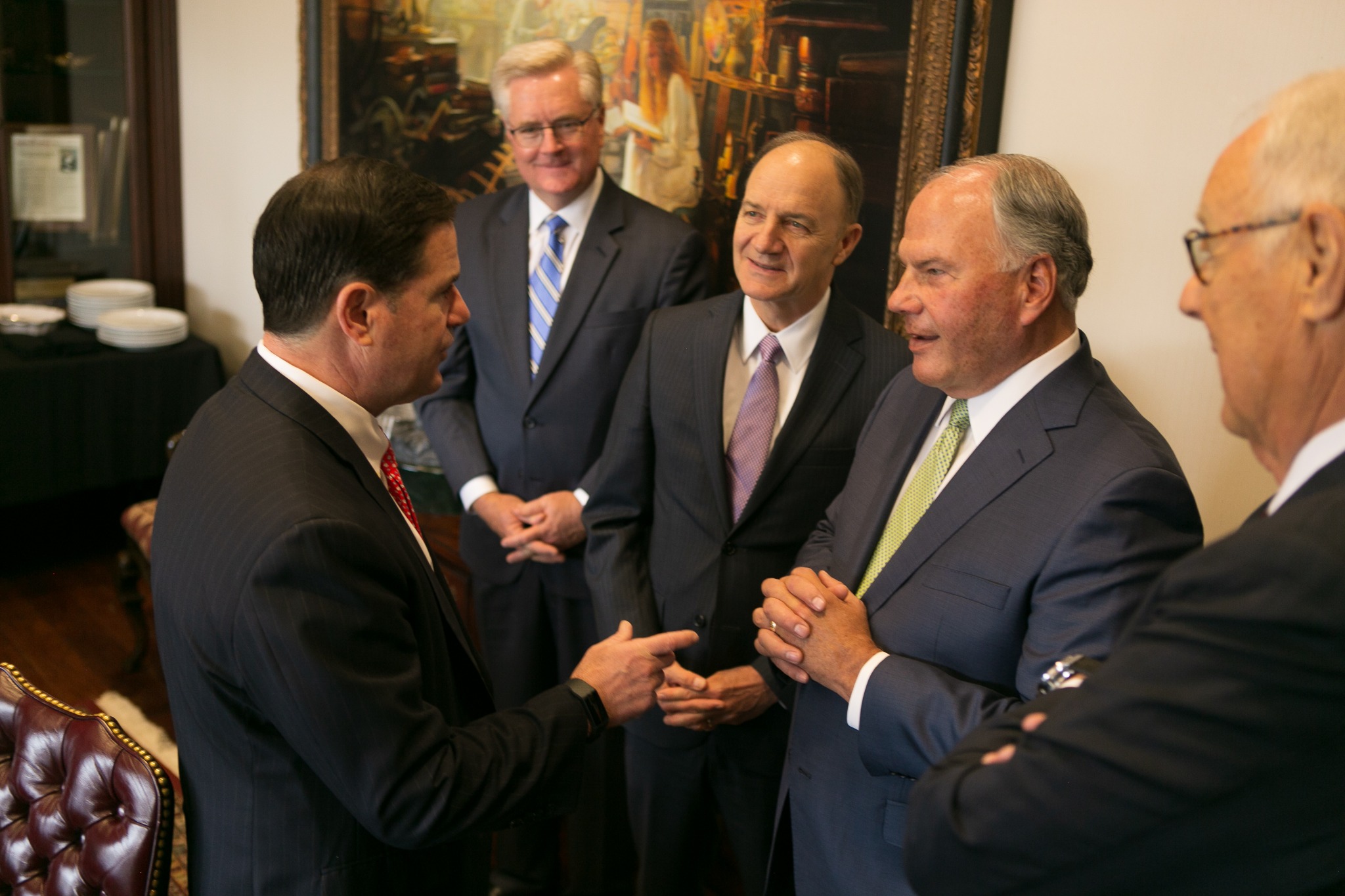 Accompanied throughout the day by Elder Paul B. Pieper of the Seventy, Elder Rasband had a private lunch with Governor Ducey where they discussed several challenging political topics, including immigration, recreational marijuana, LGBT, homelessness, education, civic responsibility, service in communities and political neutrality.