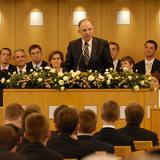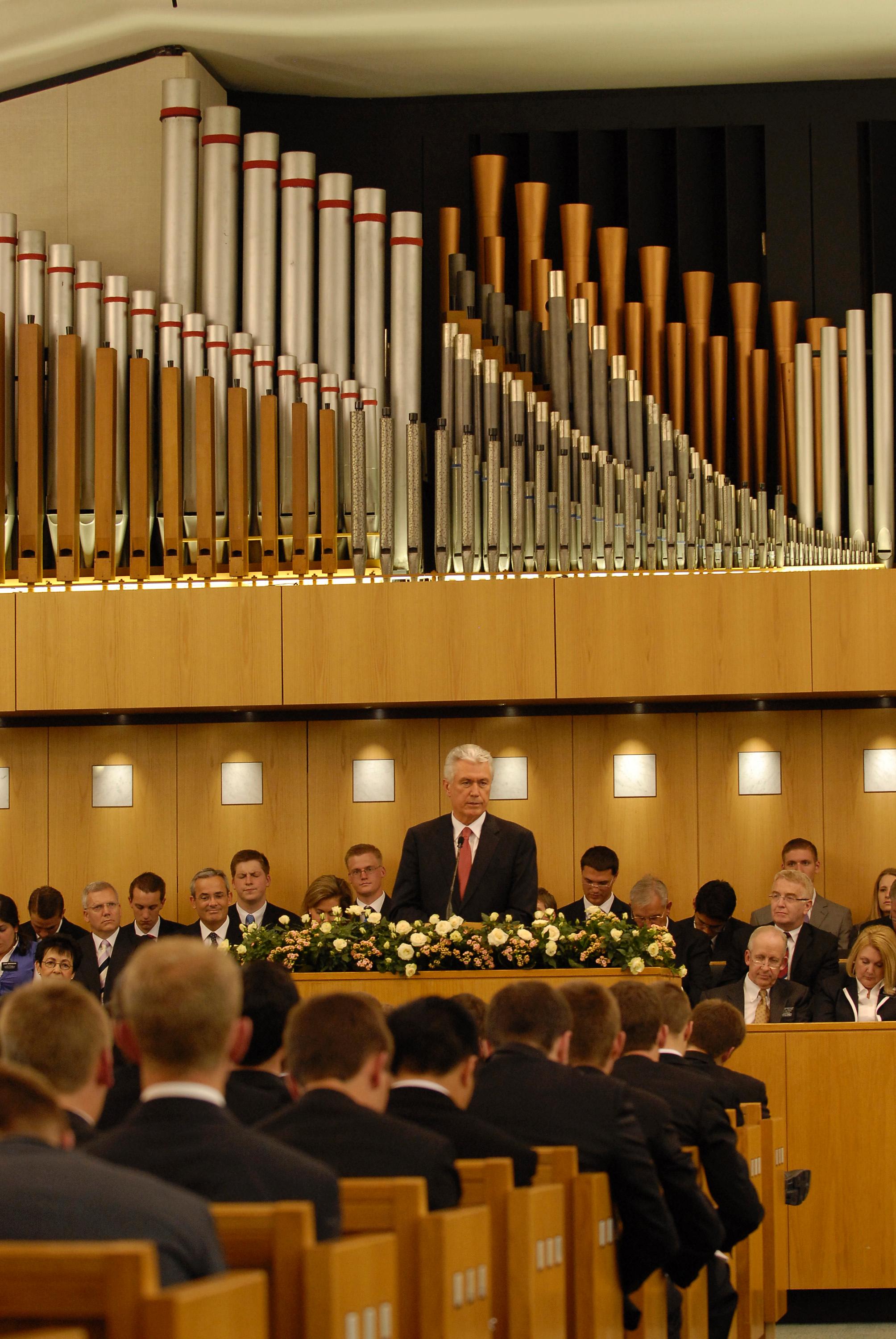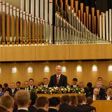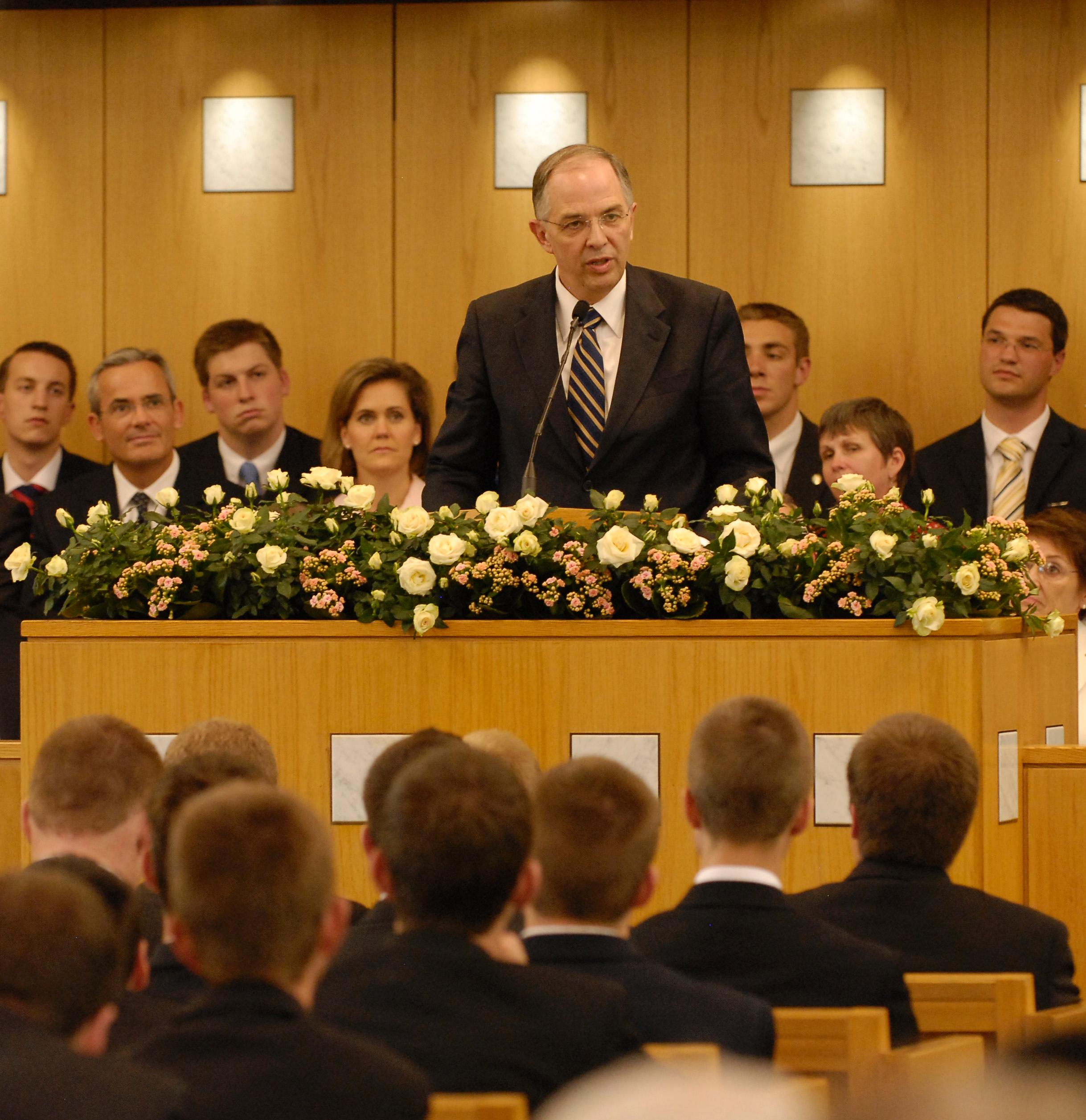 During President Uchtdorf’s satellite address, he identified problems faced in society and urged Church members to be spiritually resilient. “We do not have to fear; let us not be guided by our fears. At a time [when] economic or moral challenges in the world like to take their toll in individual lives, we have to remember that God is with us and we do not have to fear. We do not have the spirit of fear but of hope and of power.”
