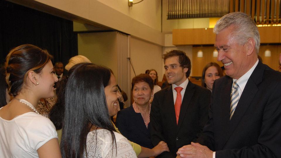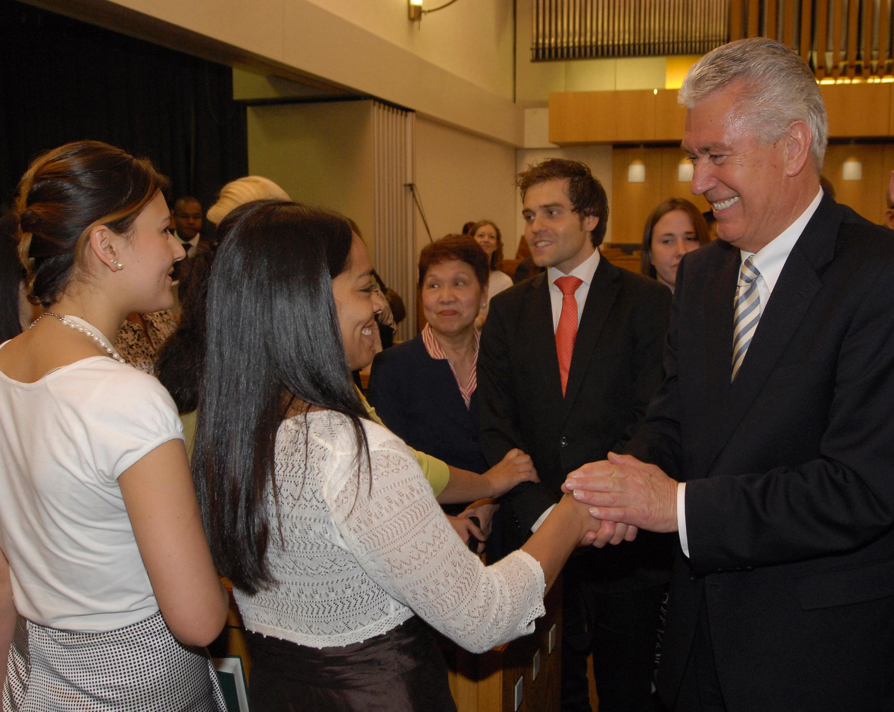 President Uchtdorf was accompanied by his wife, Harriet Uchtdorf; Elder Neil L. Andersen of the Quorum of the Twelve and his wife, Kathy Andersen; Cheryl C. Lant, Primary general president; and Ann M. Dibb, second counselor in the Young Women general presidency.