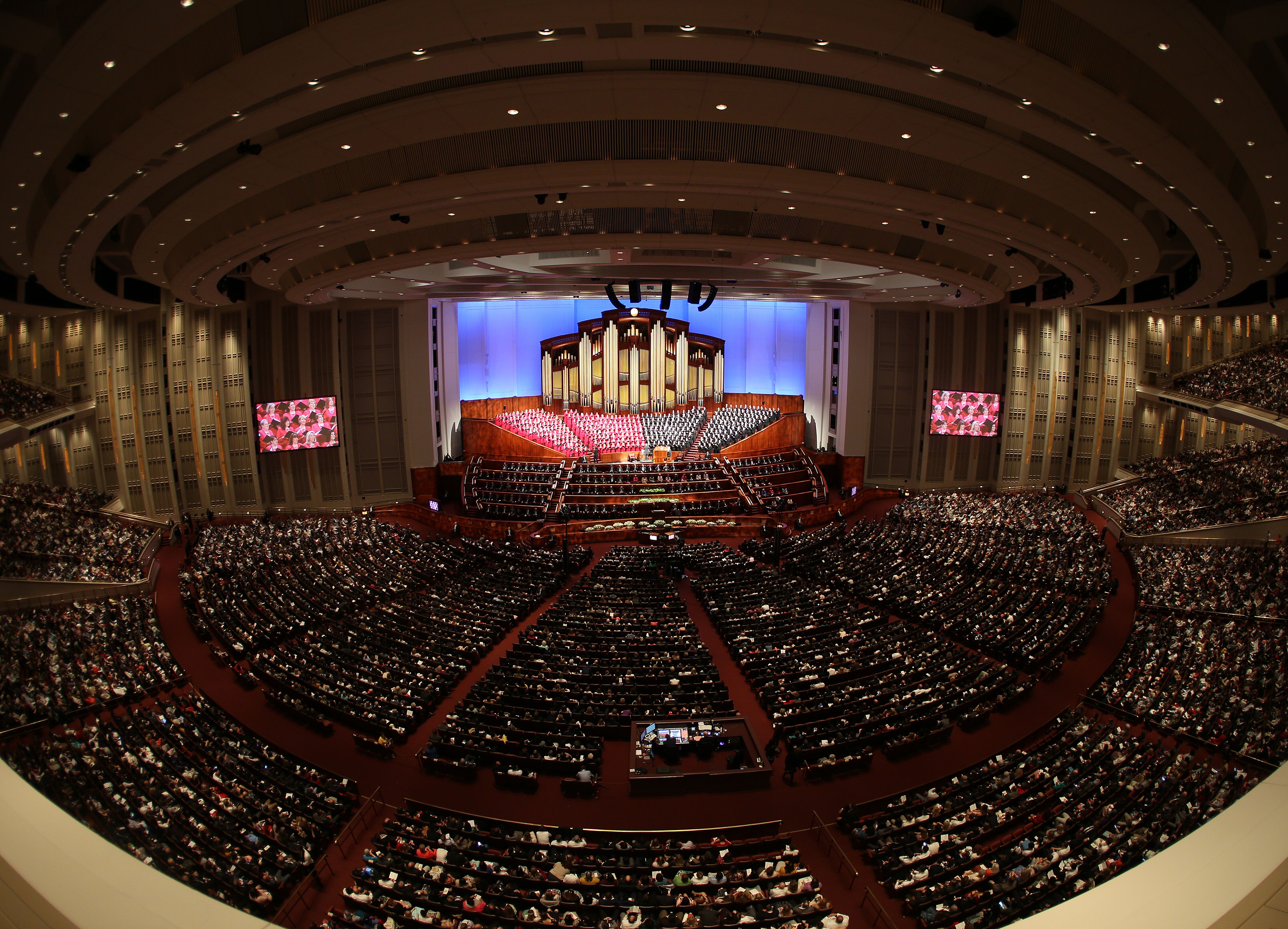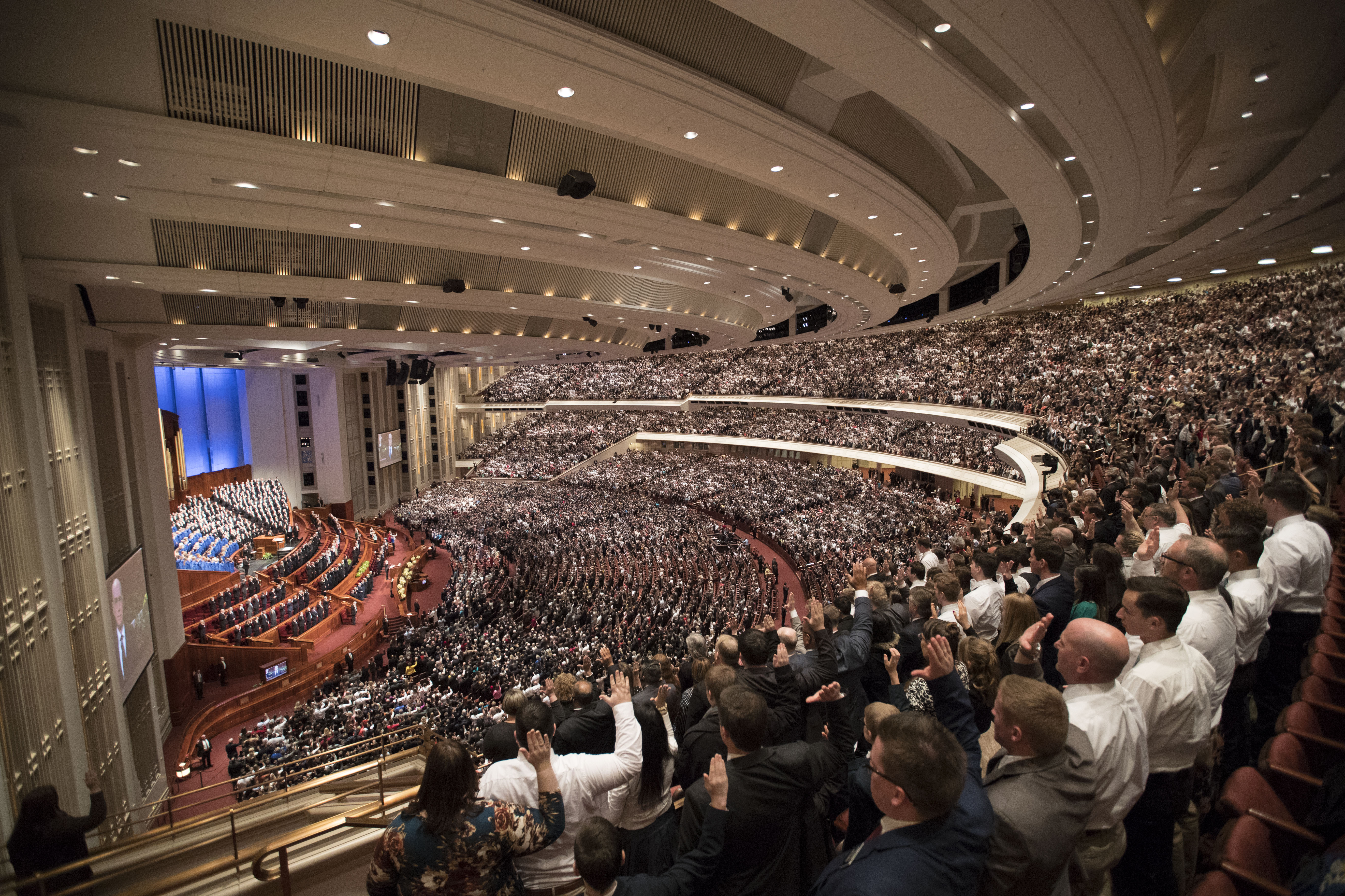 General conferences of The Church of Jesus Christ of Latter-day Saints take place every six months, originating in the 21,000-seat Conference Center in Salt Lake City and reaching a global audience estimated to be in the millions. The spring 2018 proceedings are being interpreted live into more than 80 languages and are available in more than 90 languages via television, radio, satellite and internet.