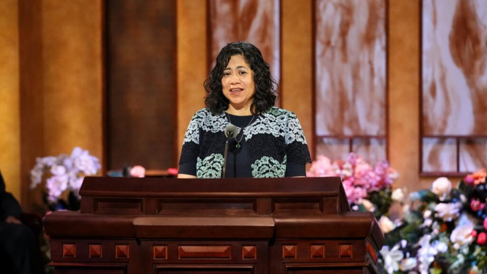 Sister Reyna Isabel Aburto, a Nicaraguan and second counselor in the Relief Society general presidency, spoke of the pain of losing her brother to an earthquake when he was a child. But she testified that her brother will live again because of the “redeeming Atonement and glorious resurrection of Jesus Christ.”