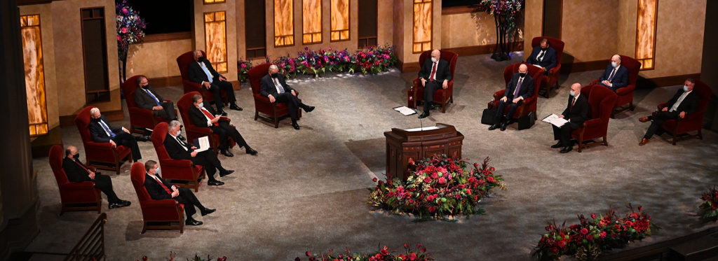 The April proceedings will mirror the October 2020 general conference: The broadcast will originate from the Conference Center Theater on Temple Square, only the speakers and their spouses for a given session will be present in the meeting, and the music will be prerecorded from previous general conferences.