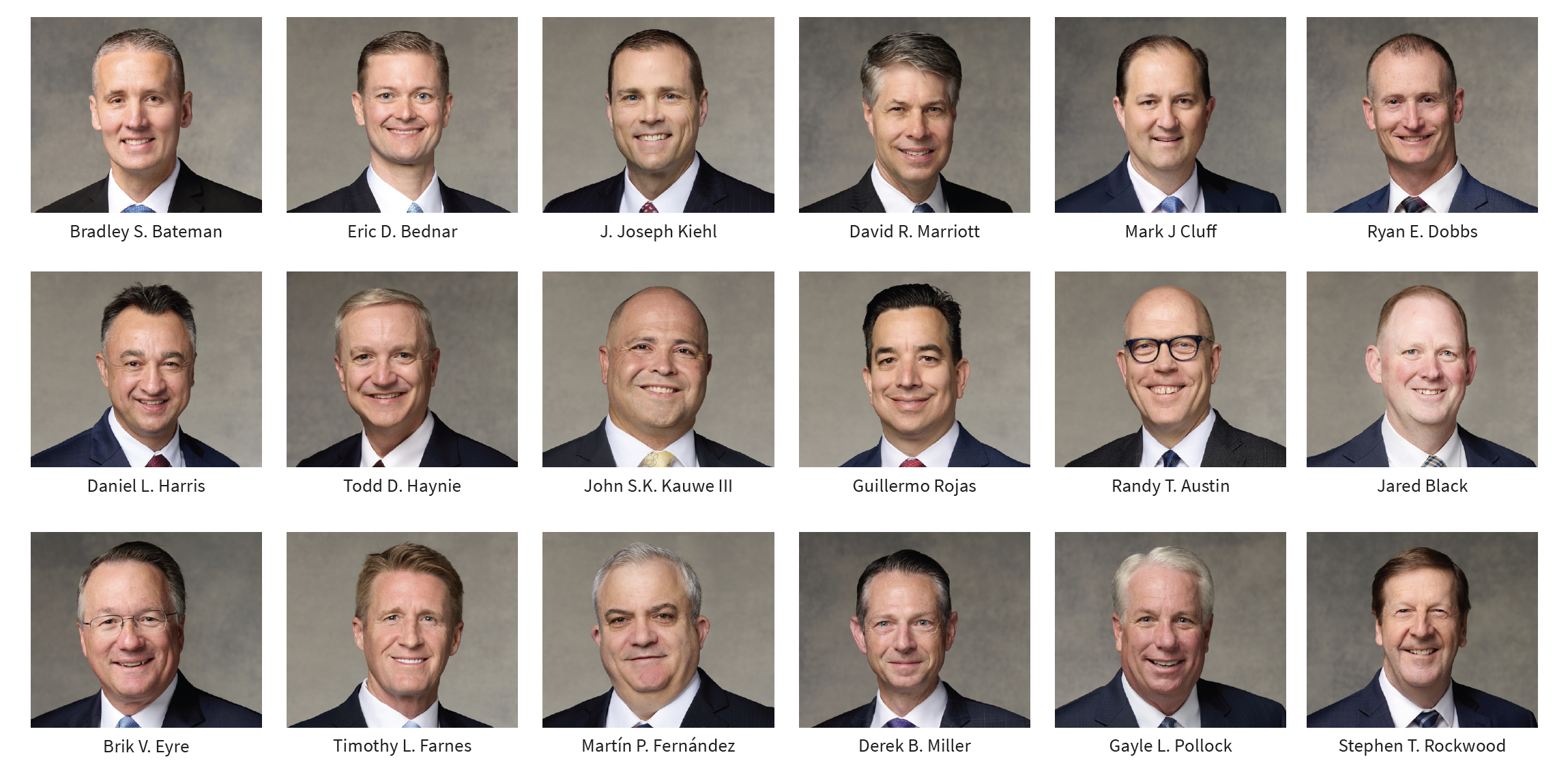 - Randy T. Austin, 58, Alpine, Utah Shareholder, Kirton/McConkie; currently serving as audit committee chairman of the Alpine Utah West Stake; former bishop, bishopric counselor, high councilor, and stake presidency counselor; wife: Leslie; four children.