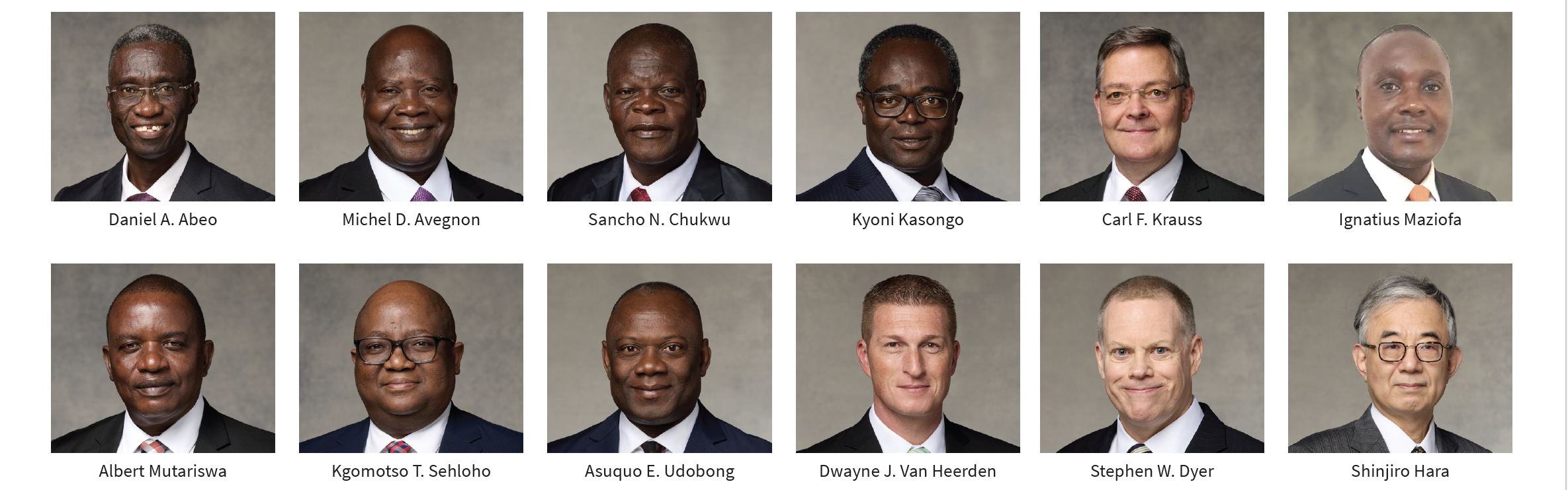 - Daniel A. Abeo, 57, Nsawam, Ghana; currently serving as president of the Nigeria Uyo Mission; former bishop, bishopric counselor, counselor in a branch presidency, high councilor, and stake president; wife: Evelyn; four children.
