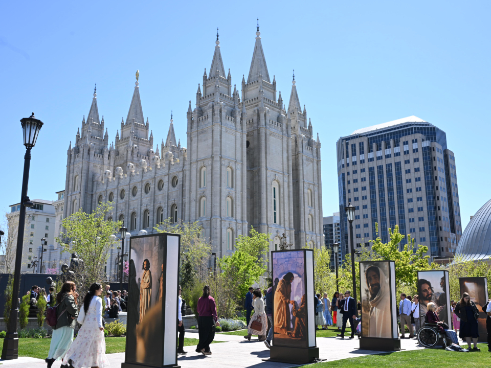 A family on Temple Square in Salt Lake City, Utah, during general conference weekend, April 4-April 5, 2026. 2026 by Intellectual Reserve, Inc. All rights reserved.