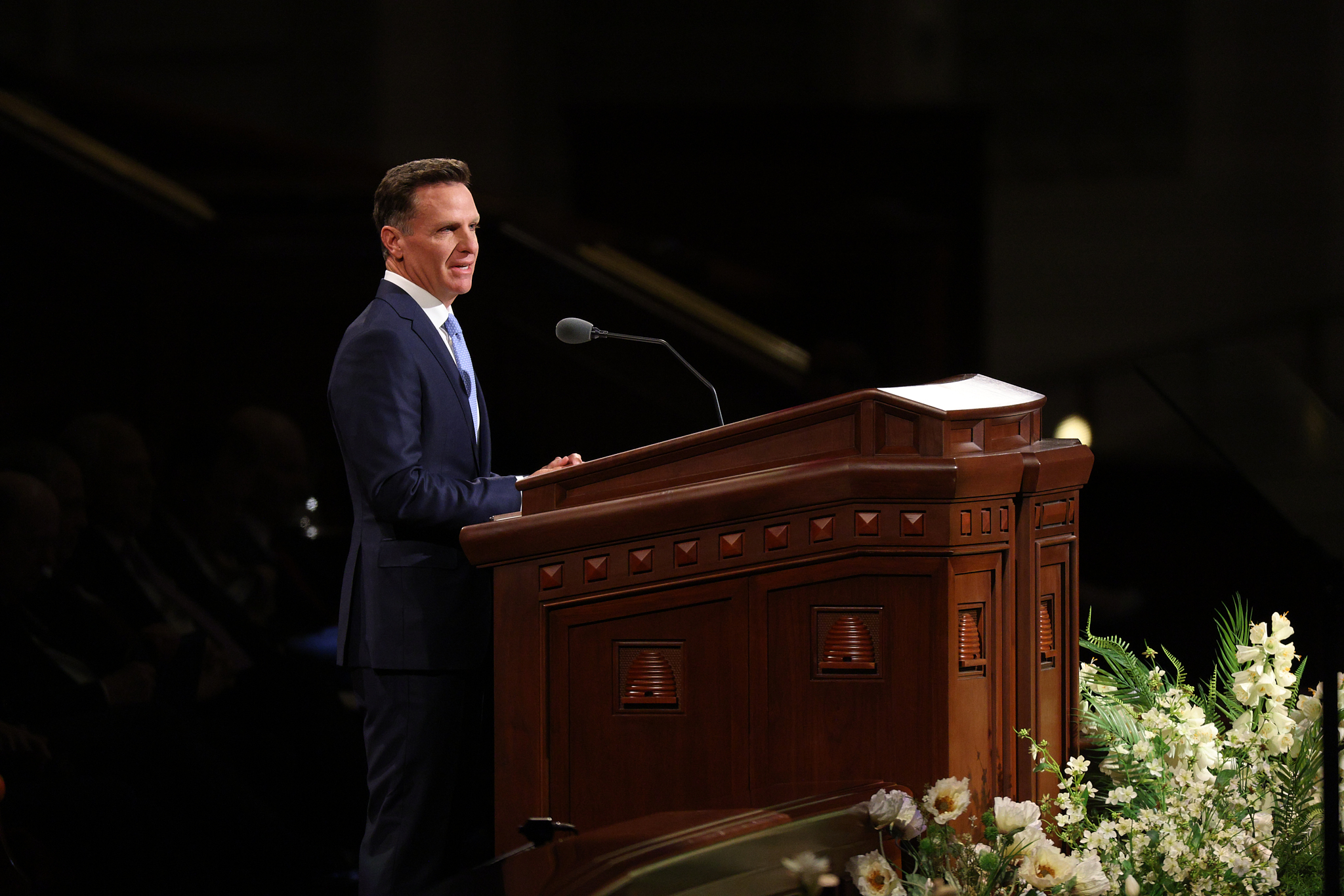 Elder Ronald A. Rasband of the Quorum of the Twelve Apostles conducted the session on April 4, 2026, in the Conference Center on Temple Square in Salt Lake City.