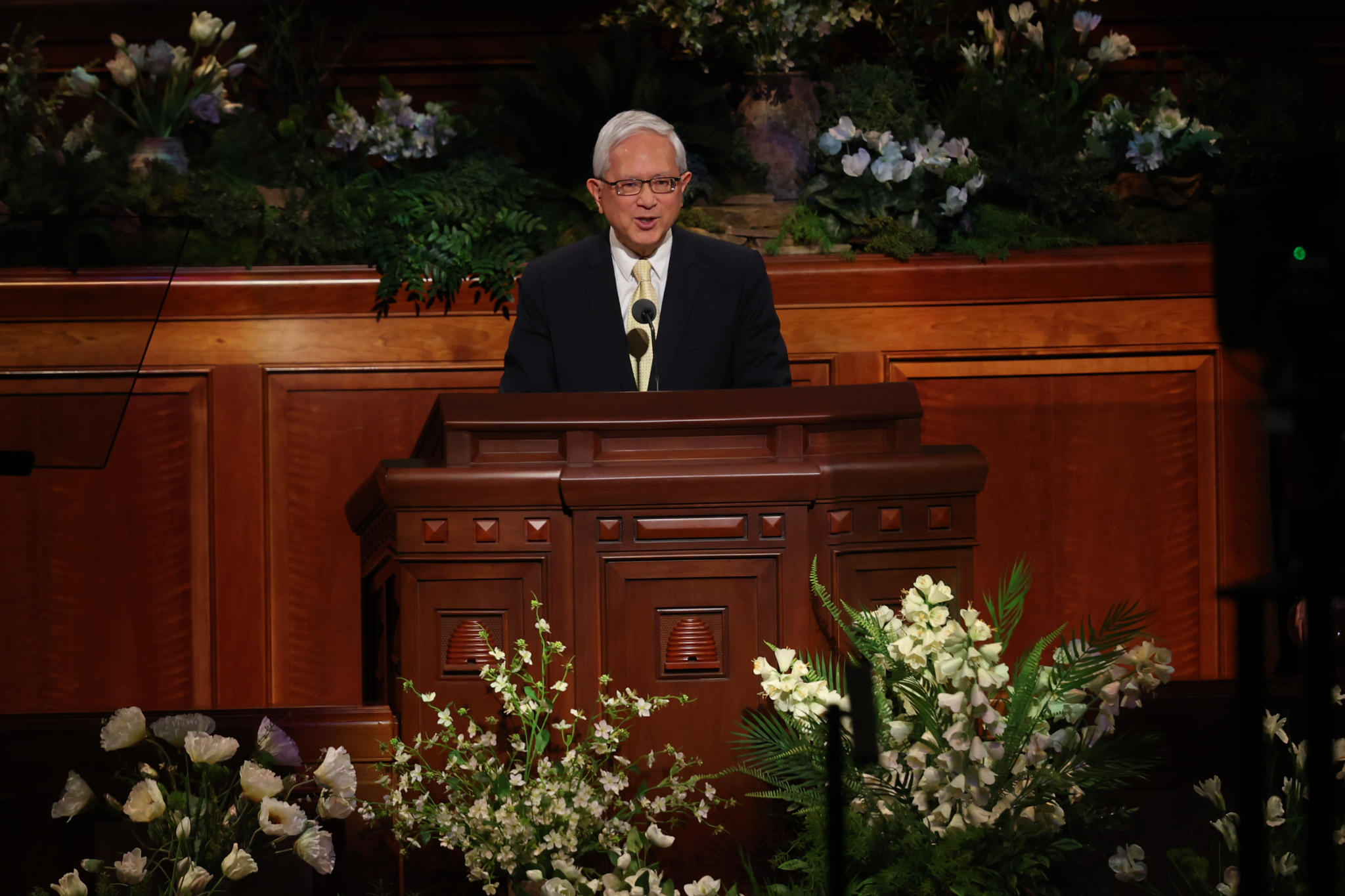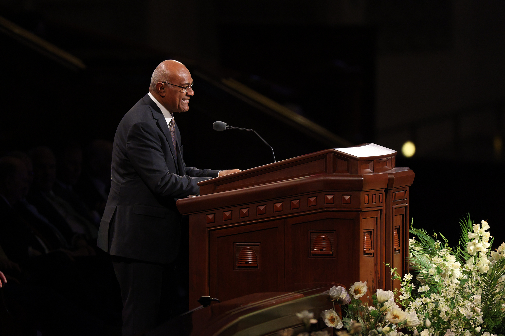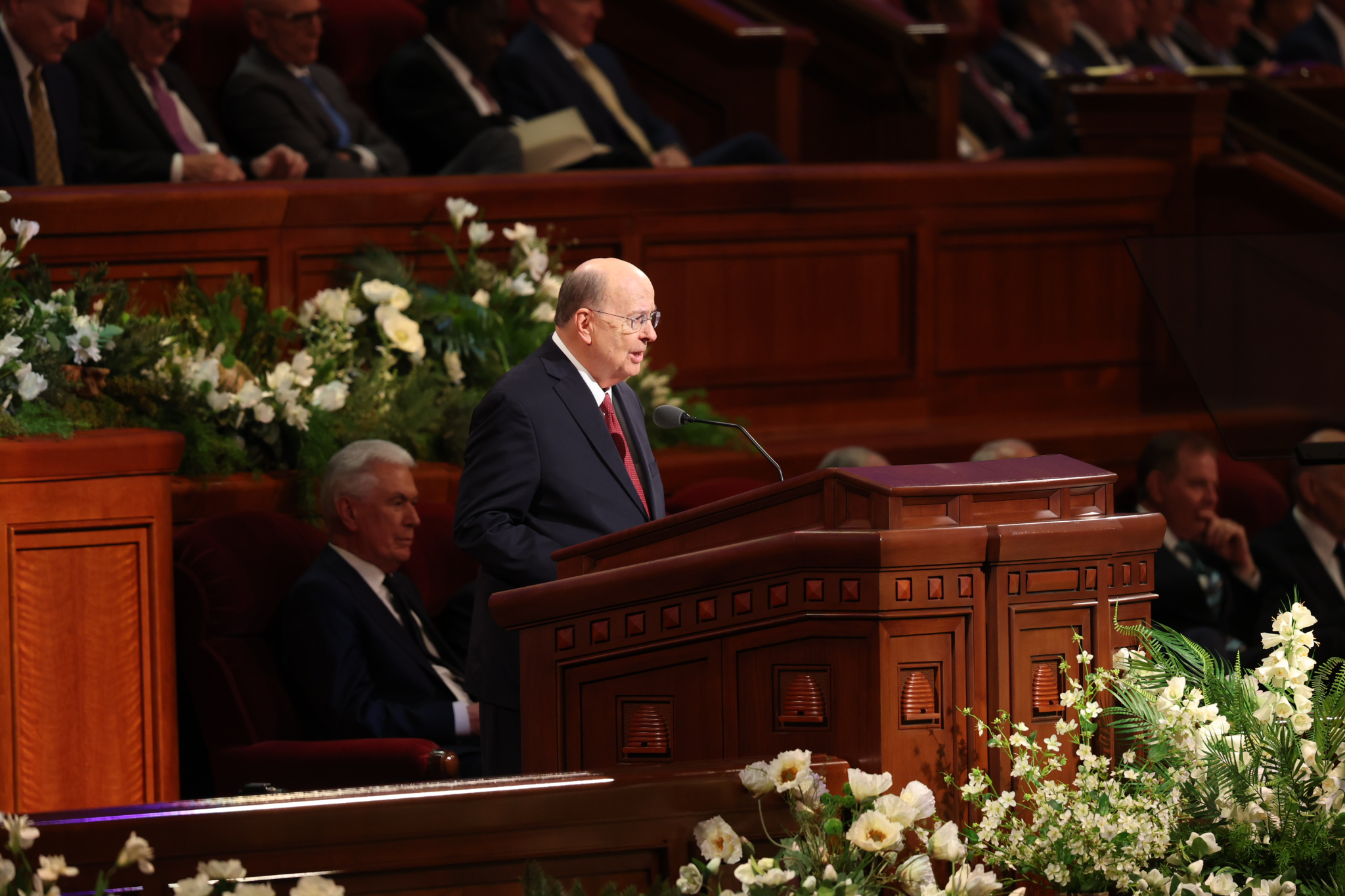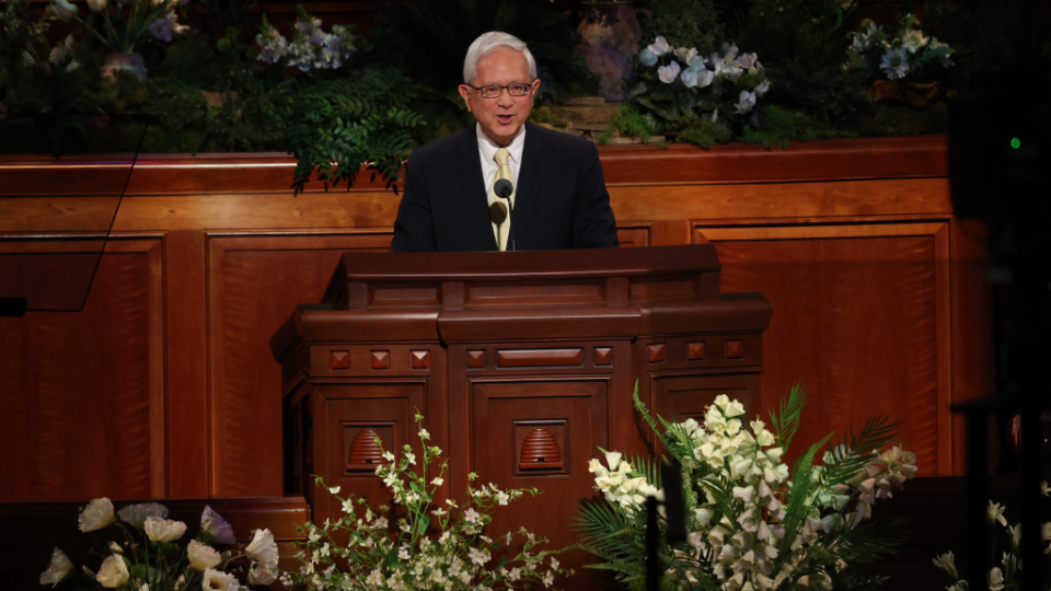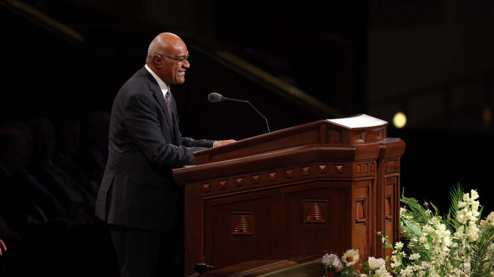 Elder Aaron T. Hall of the Seventy provides remarks during the Sunday afternoon session of general conference at the Conference Center in Salt Lake City, Utah, on April 5, 2026. 2026 by Intellectual Reserve, Inc. All rights reserved.Music for this session was provided by the Tabernacle Choir at Temple Square, under the direction of Mack Wilberg and Ryan Murphy. Selections were “He Is Risen,” “Lord, I Would Follow Thee,” “Tell Me the Stories of Jesus” and “Redeemer of Israel.” The Choir also joined with the congregation in singing “I Stand All Amazed.”
