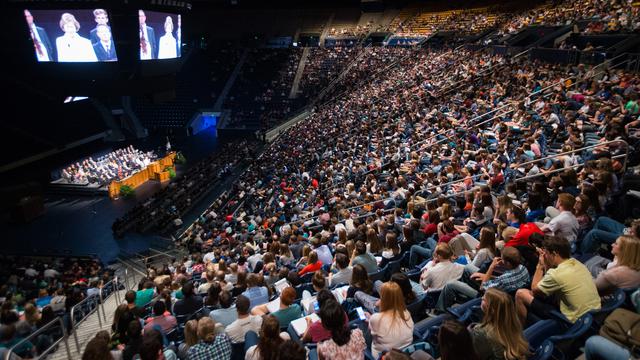 Baroness Emma Nicholson addressed 8,000 Brigham Young University students gathered for a university forum Tuesday, September 22, telling them, "I believe profoundly that our whole lives must be committed to embracing the values that 'the common good' enshrines." Nicholson is a member of the UK House of Lords and founder and chair of AMAR, an international charity that helps communities in the Middle East faced with conflict.