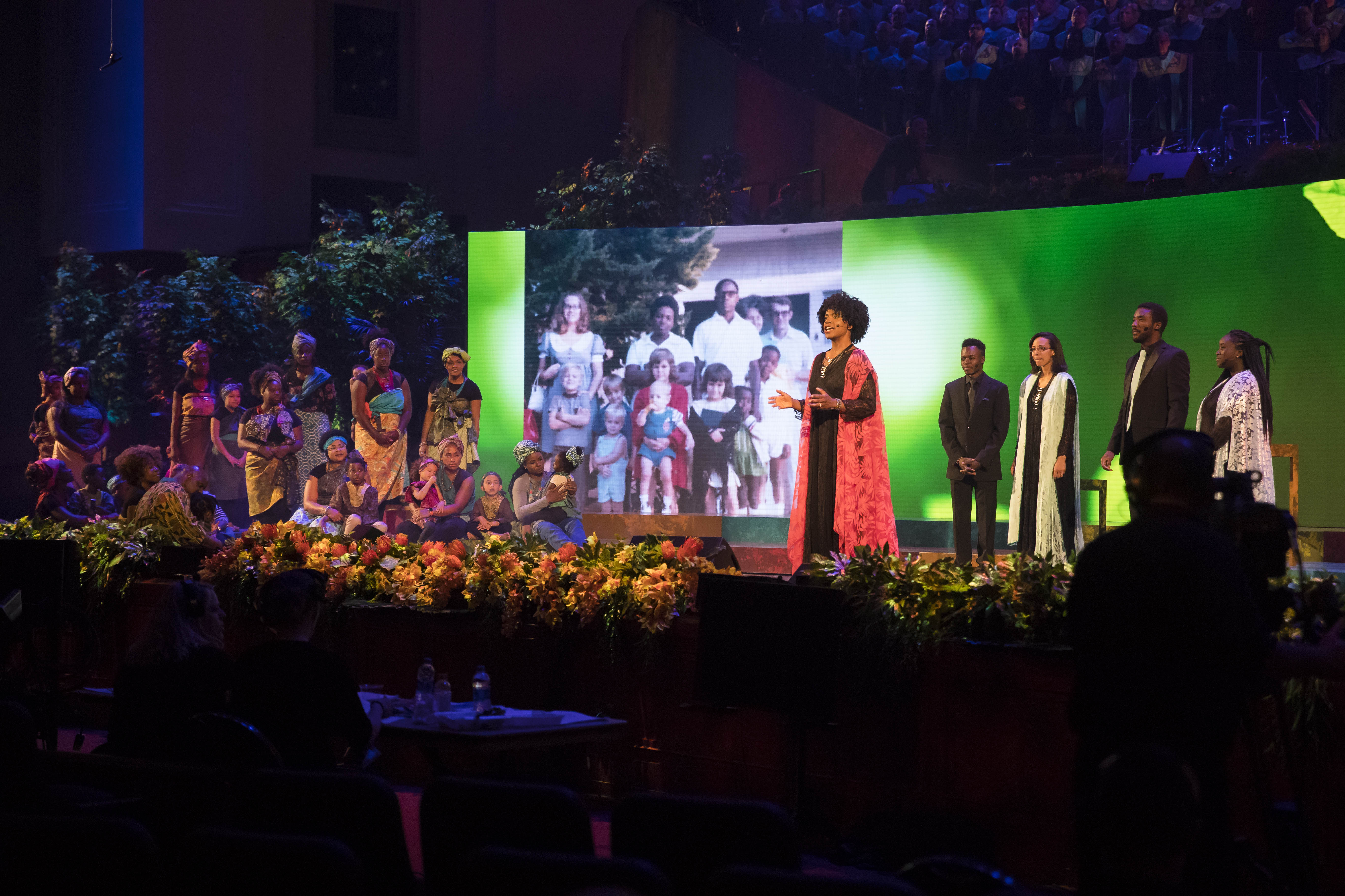 Yvonne Baraketse, the evening’s choreographer and a Latter-day Saint since her days as a refugee in Belgium, said she hopes people come away from Friday’s event with a deeper understanding that “we all are children of God, that He loves us [and] has a plan for each one of us.” Temanuata Laussen, a member of Gladys Knight’s Saints Unified Voices Choir, expressed the same desire, as well as her gratitude to be a part of the celebration. “I can't even say how much of a blessing it is to be a part of this,” she said. “It's just been so neat for all of us to come together with our different cultures, our musical backgrounds, our religious backgrounds. I hope [people] leave feeling the love of our Father in Heaven, feeling the love of our prophet and the Quorum of the Twelve Apostles [and] our First Presidency.”