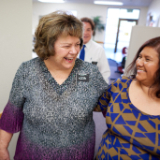 Viola Murray, a former transitional services initiative service missionary that volunteered to help individuals stabilize their lives for more than four years reunites with a beneficiary of the program on Wednesday, July 21, 2021, at the initiative’s office at Welfare Square in Salt Lake City, Utah. 2021 by Intellectual Reserve, Inc. All rights reserved.“When I first came in, I met you,” the woman said as she spoke with Murray recently. “I remember I had left a place that wasn’t healthy for me, and I had been sober for four months. I remember walking in here with nowhere to go, and I met you, and you just believed in me.”