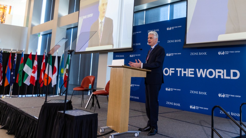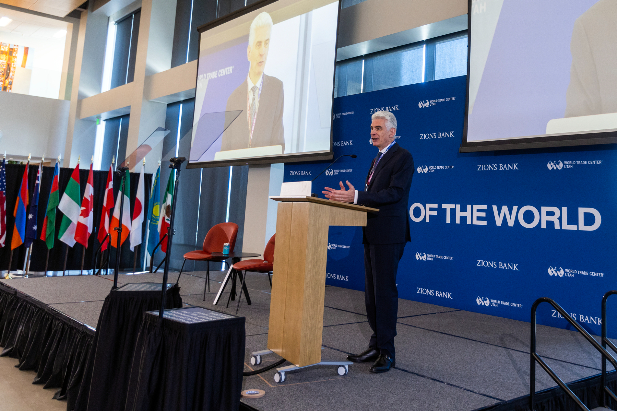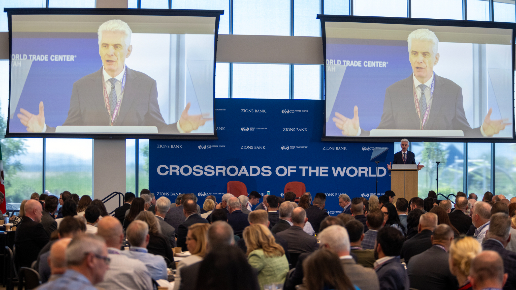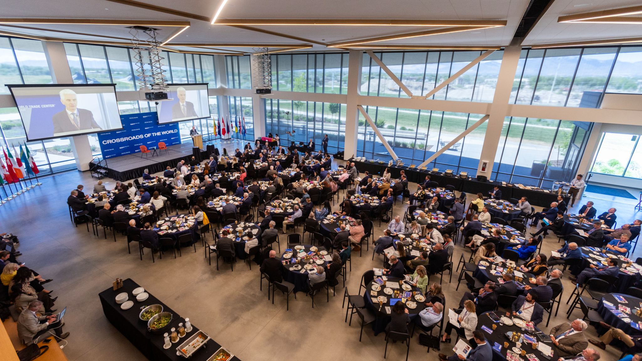 Presiding Bishop Gérald Caussé speaks at “Crossroads of the World,” an international trade summit at the Zions Technology Center in Salt Lake City, on Wednesday, May 7, 2025.© 2025 by Intellectual Reserve, Inc. All rights reserved.“As much as I wish we could feed every hungry child, shelter every person in need, and care for everyone who is sick, we know the Church alone can only do so much,” Bishop Caussé said. “But when many organizations and individuals share that same commitment to serving others, our combined impact can reach far beyond what any one of us could do alone.”