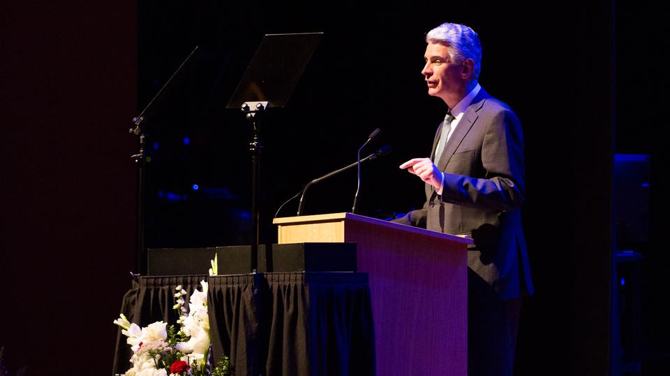“It is our conviction that no person can truly claim to love God without also reaching out and lifting up God’s children, both through offering spiritual comfort and providing for temporal wants,” said Bishop Gérald Caussé, presiding bishop of The Church of Jesus Christ of Latter-day Saints. Bishop Caussé spoke at a religious symposium at Chapman University in Orange, California, Tuesday evening, February 20, 2018.