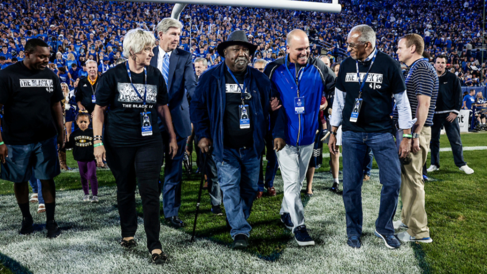 The former University of Wyoming (UW) athletes were two of the school’s 14 Black players dismissed from the group in 1969 prior to a game against Brigham Young University (BYU). When they asked their coach if they could protest a policy of The Church of Jesus Christ of Latter-day Saints that prevented Black men from priesthood ordination, he kicked them off the team. (The Church’s policy was changed in 1978 and added to the faith’s scriptural canon.)