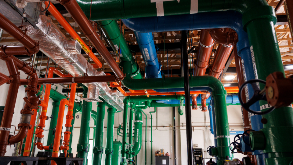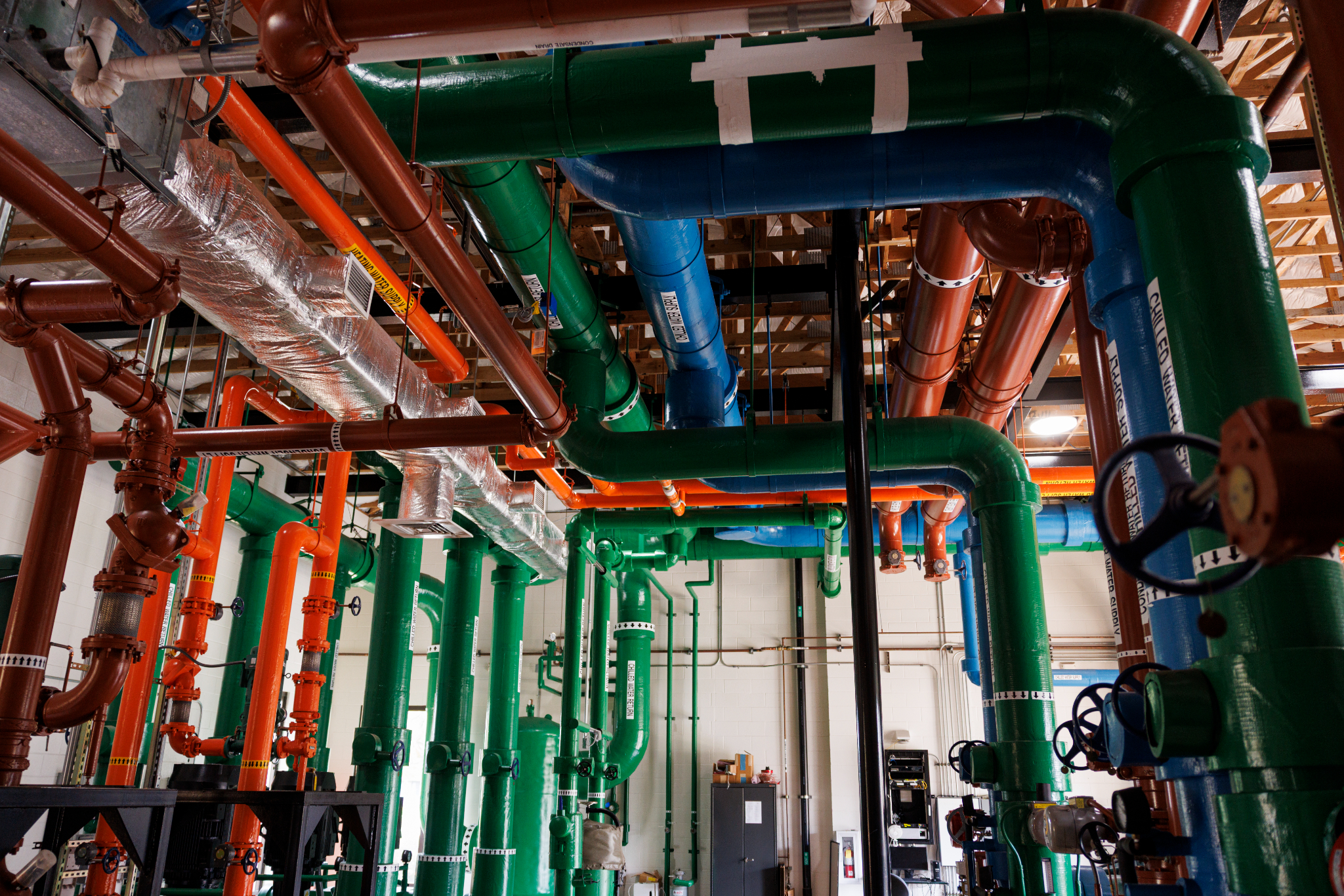 This process warms the returning water, which is then reused, eliminating the need for numerous hot water heaters across campus.