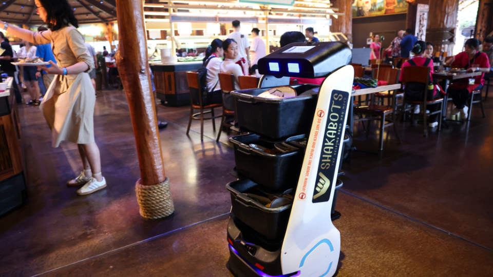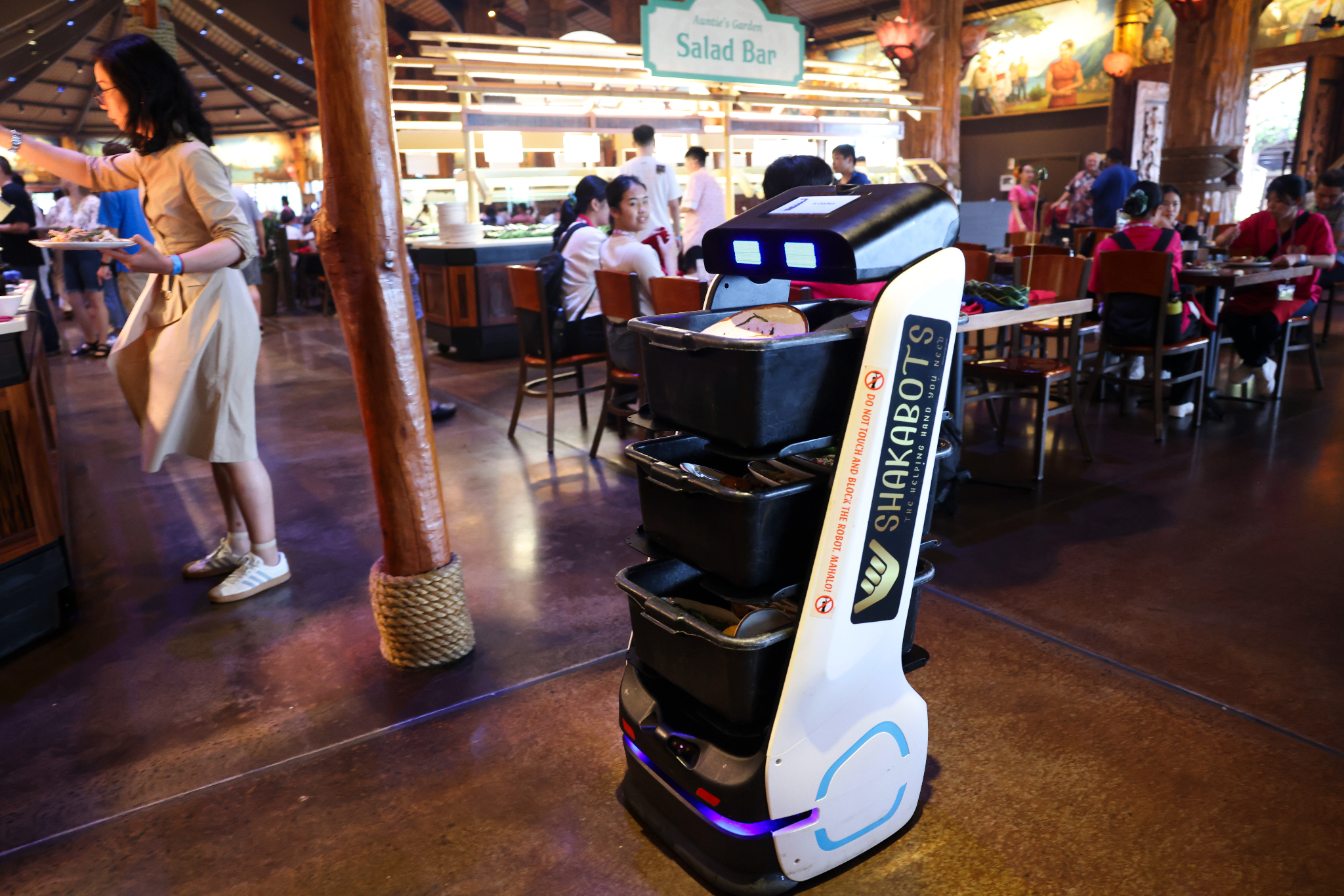 The robots haul over 50 pounds of soiled dishes to the kitchen, saving time for student workers. “That has saved so much time for our students,” Apelu said.