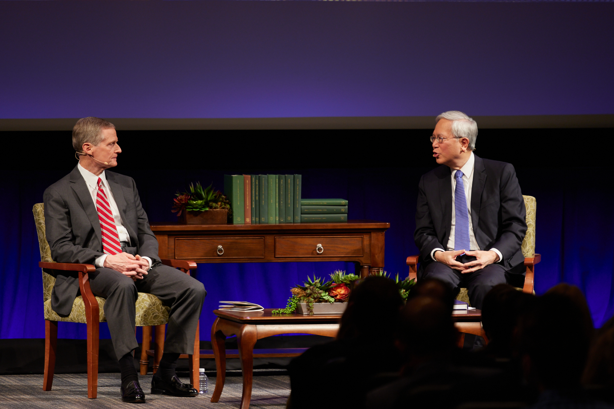 Elders David A. Bednar and Gerrit W. Gong speak at the final session of the two-day BYU conference, “The Islamic World Today: Issues and Perspectives,” on October 19, 2021. The session was held in the auditorium of the Joseph Smith Building.2021 by Intellectual Reserve, Inc. All rights reserved.Humanitarian Work