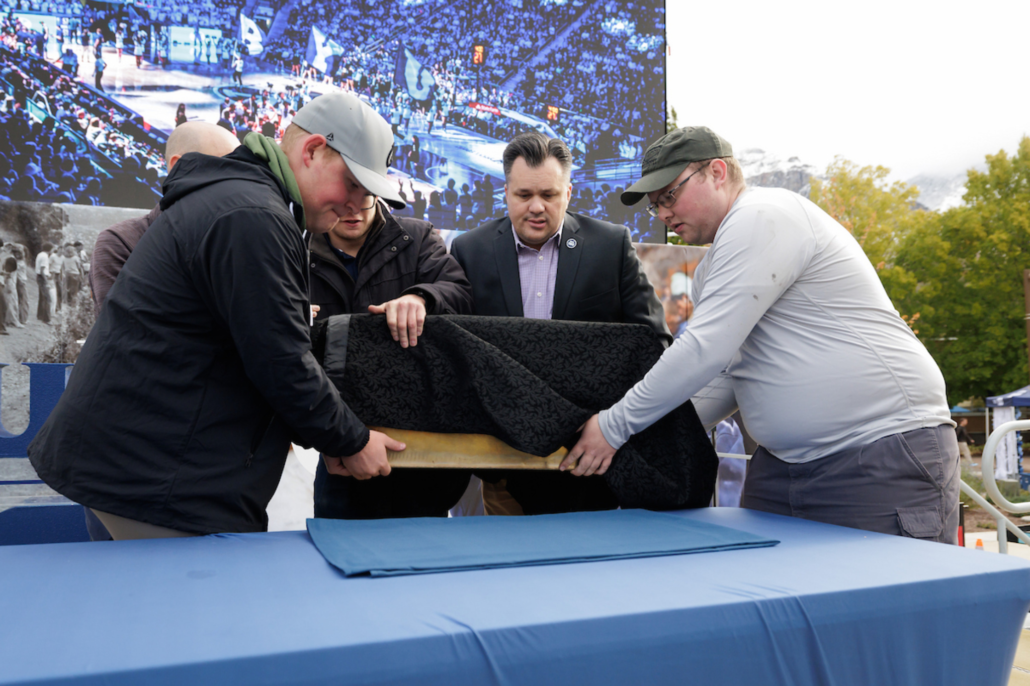 Also pulled from the capsule was the BYU centennial flag, which was designed under the direction of then-BYU president and current President of The Church of Jesus Christ of Latter-day Saints, President Dallin H. Oaks, and a gavel that was presented to him when he was the school’s president.