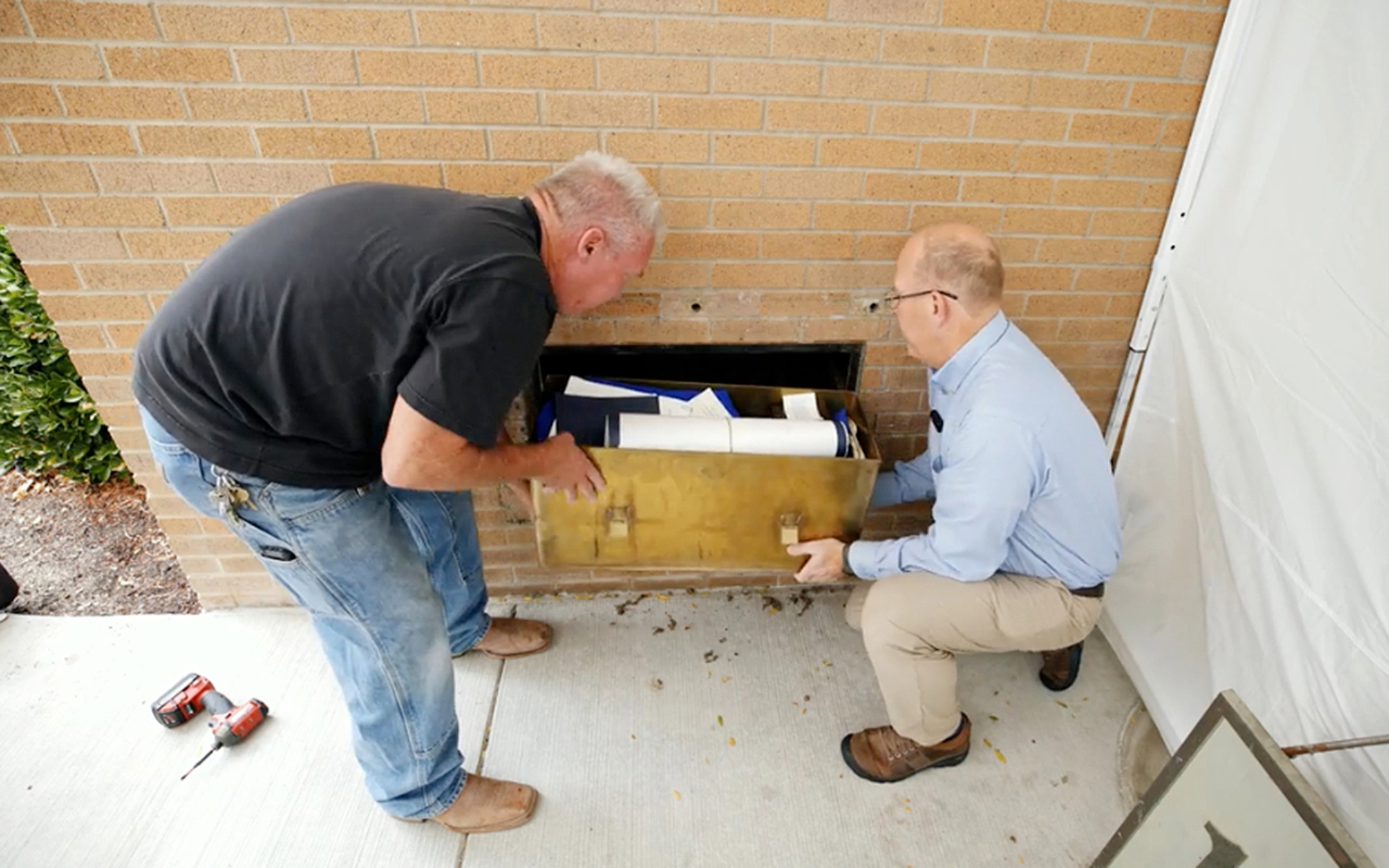 Brigham Young University in Provo, Utah, marked the anniversary of its founding 150 years ago today, October 16, by opening a 50-year-old time capsule that students and employees secured in an exterior wall of the Harold B. Lee Library during the university’s centennial celebration in 1975.