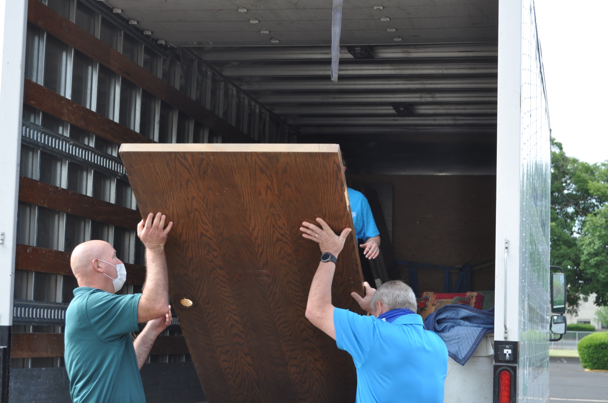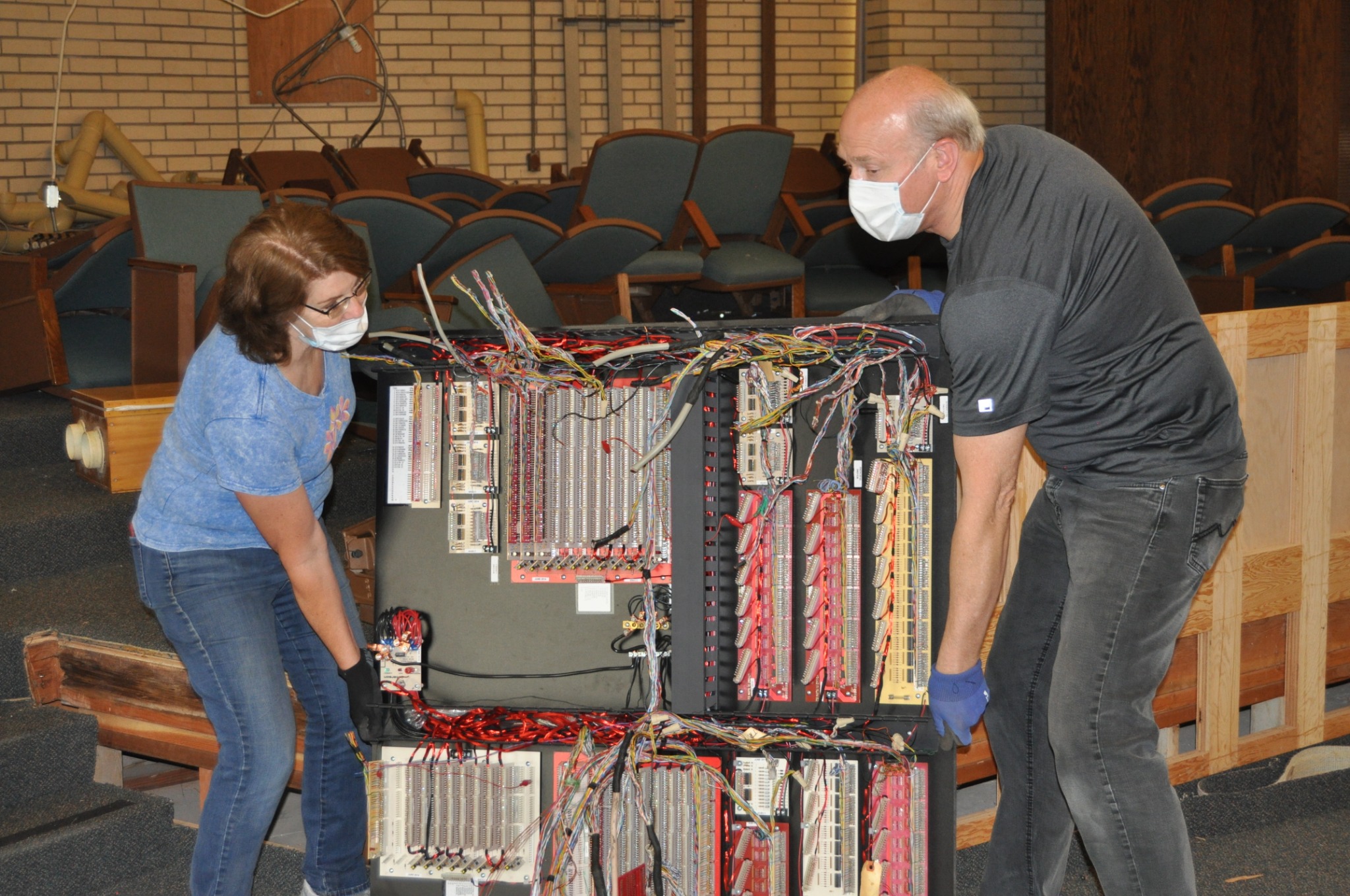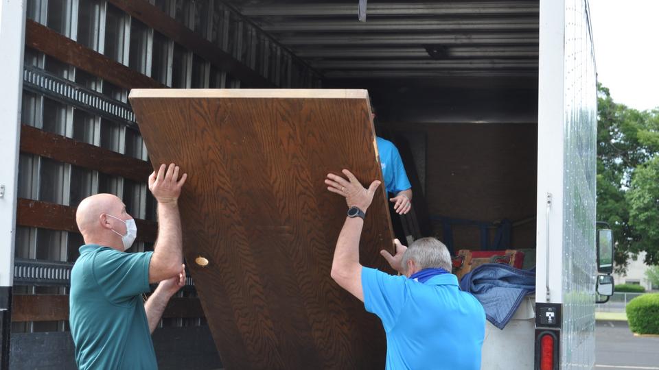 Wearing face masks amid the COVID-19 pandemic, helpers removed cabinets and doors, furniture, pews and even the gymnasium floor of the Yuba City California Stake Center, a multicongregational house of worship for members of The Church of Jesus Christ of Latter-day Saints.