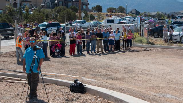 The statue was placed on a picture-perfect day in the southern Utah town of Cedar City, famous for the annual Utah Shakespeare Festival and several natural scenic vistas.