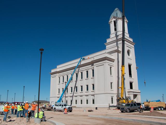 The Cedar City Utah Temple, located along the I-15 corridor, has taken a step toward completion with the placement of the angel Moroni, an iconic figure on most temples of The Church of Jesus Christ of Latter-day Saints.