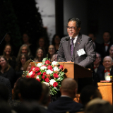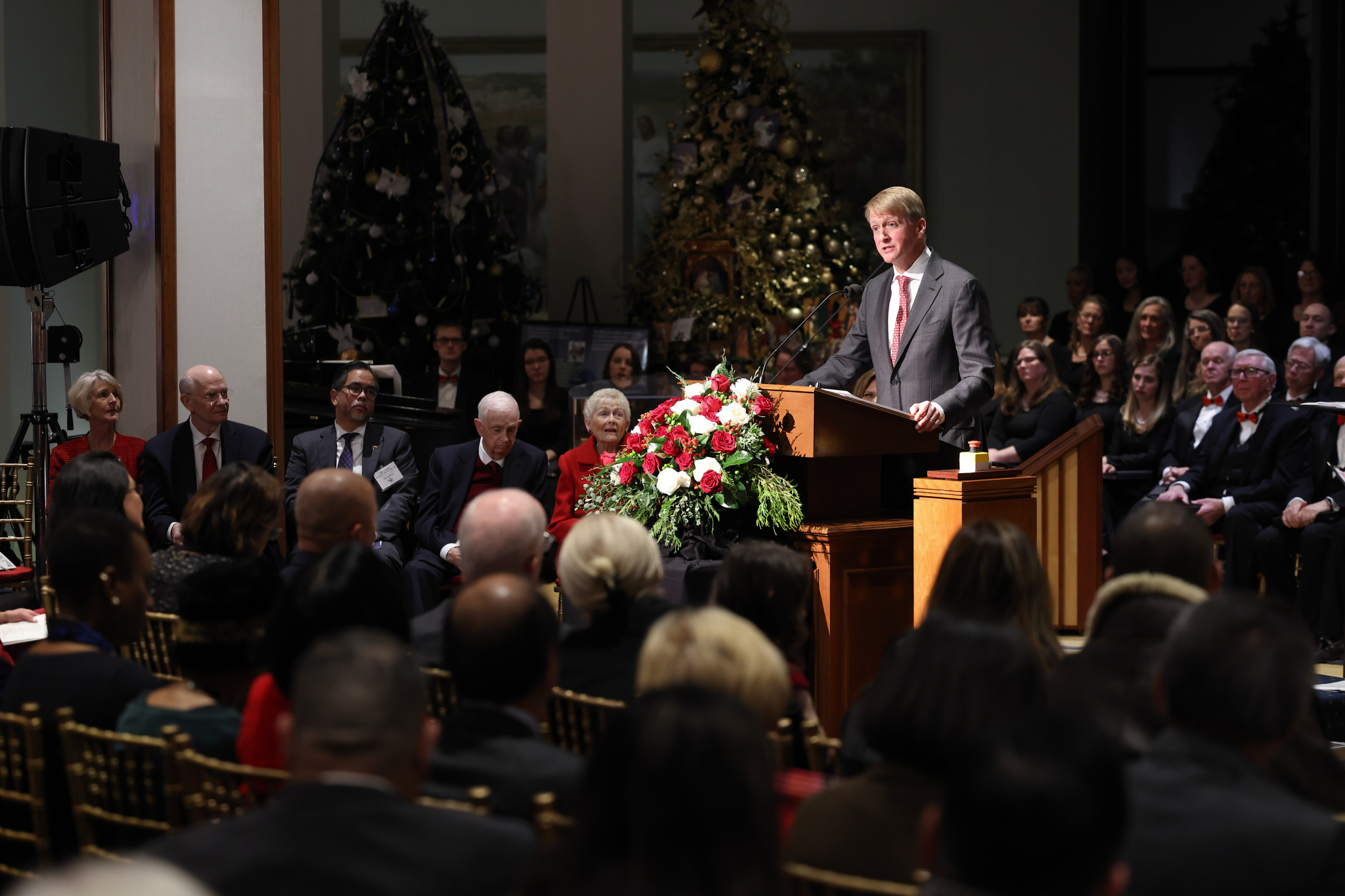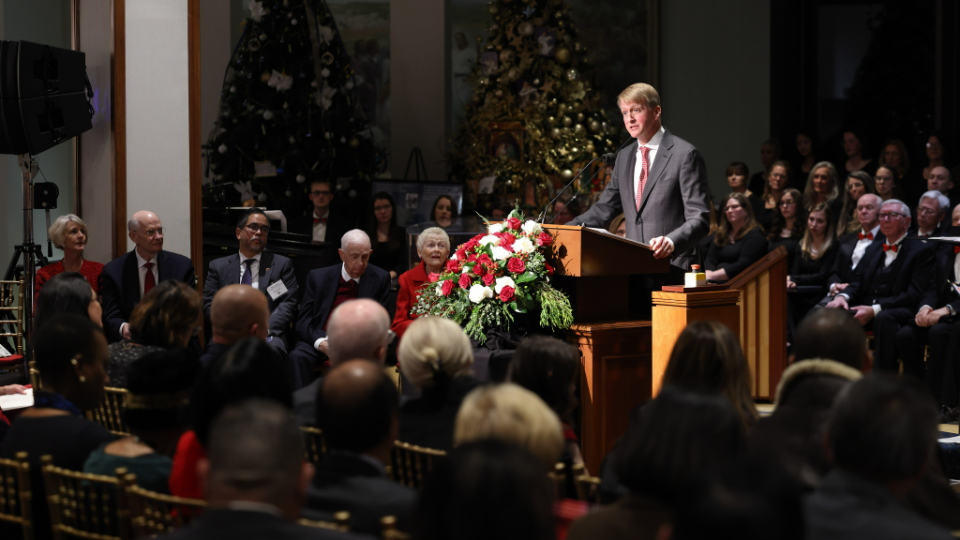David Marriott speaks during the lighting ceremony for the 46th annual Festival of Lights at the Washington D.C. Temple on Tuesday, November 28, 2023. He was joined by his parents J.W. and Donna Marriott who have annually hosted the event. 2023 by Intellectual Reserve, Inc. All rights reserved.“The eyes are the window to this light,” Marriott said. “As we put aside differences, embrace the beauty of diverse cultures, religions, beliefs and serve one another, our own life grows brighter. If we contend one with another, and bring about pain and destruction, our light diminishes and can even be extinguished.”