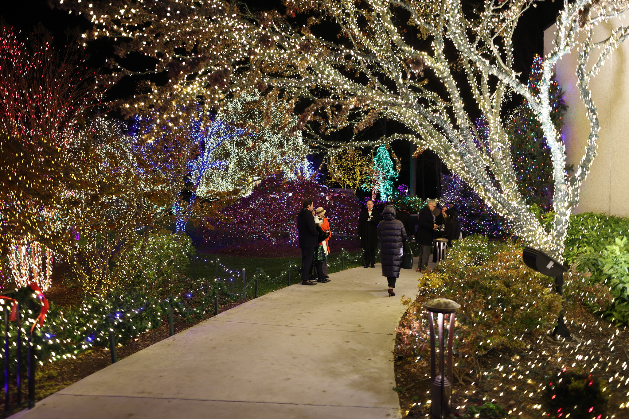 In addition to the Christmas lights (from 4:45 p.m. to 9 p.m. EST through January 1, 2024), visitors will see Nativity créches and Christmas tree decorations from around the world. They can also enjoy a nightly holiday performance. Entrance and parking are free, and tickets are not required. The address is 9900 Stoneybrook Drive in Kensington, Maryland. The Festival of Lights opens to the public on November 30th.