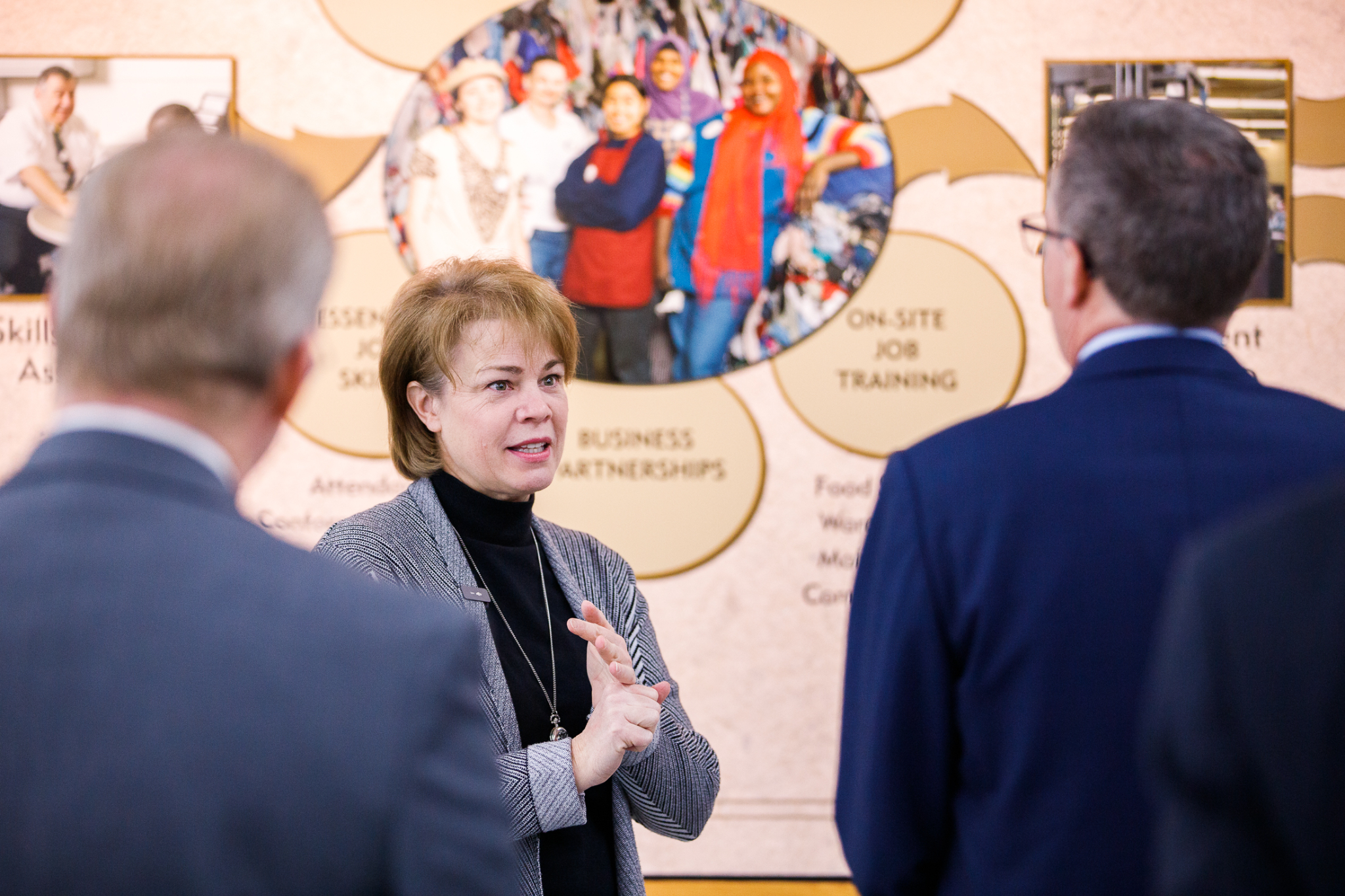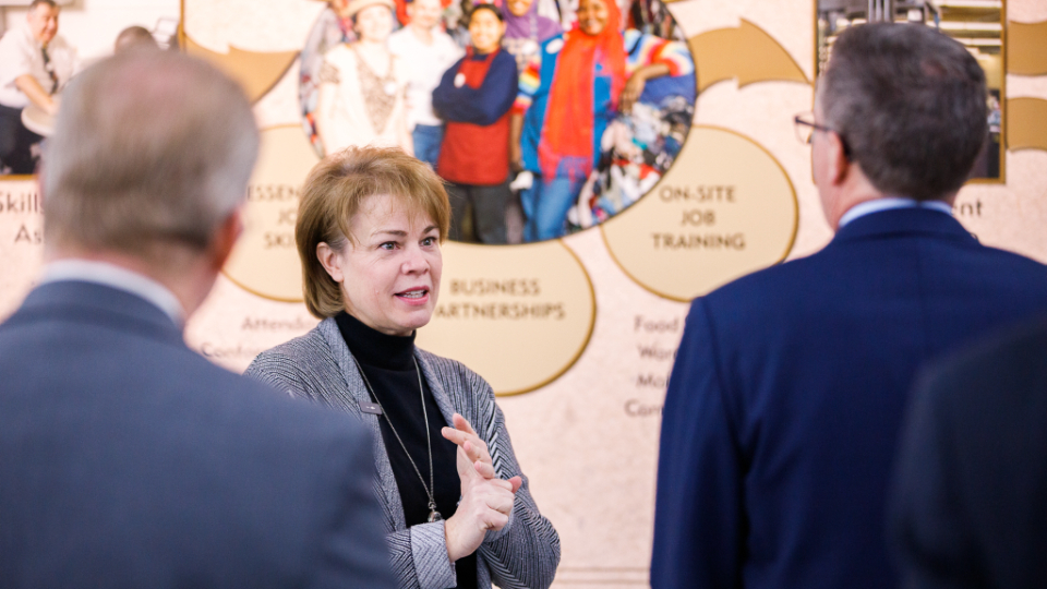 Sharon Eubank, director of Humanitarian Services for the global Church, led tours of the Humanitarian Center and Welfare Square for the UNICEF USA leaders.