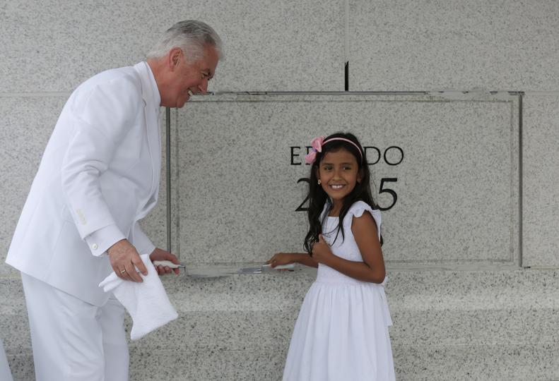 Joining him were Elder David A. Bednar of the Quorum of the Twelve Apostles and Elder Michael John U. Teh of the Seventy and a representative of the Church Temple Department.