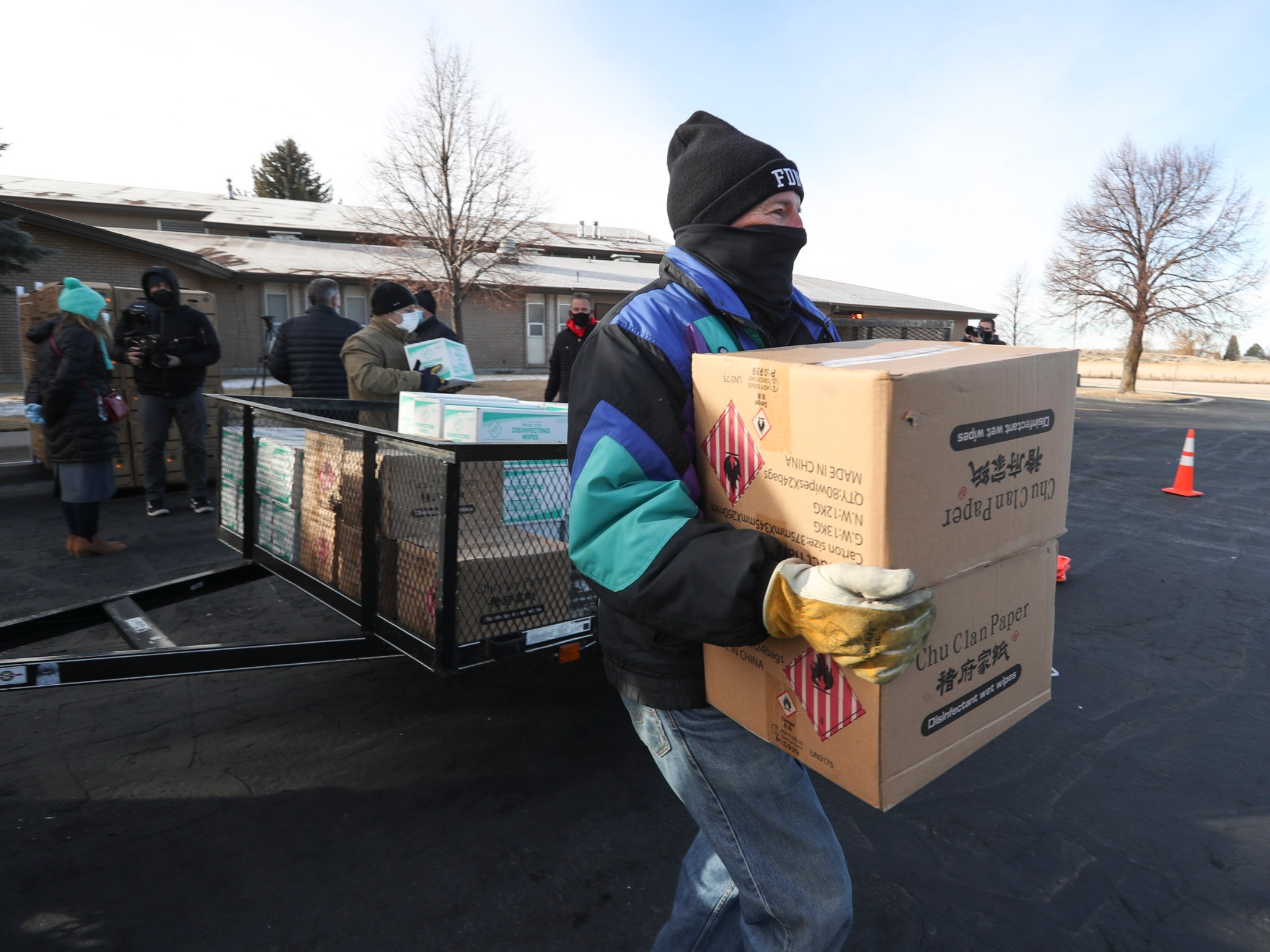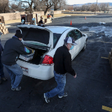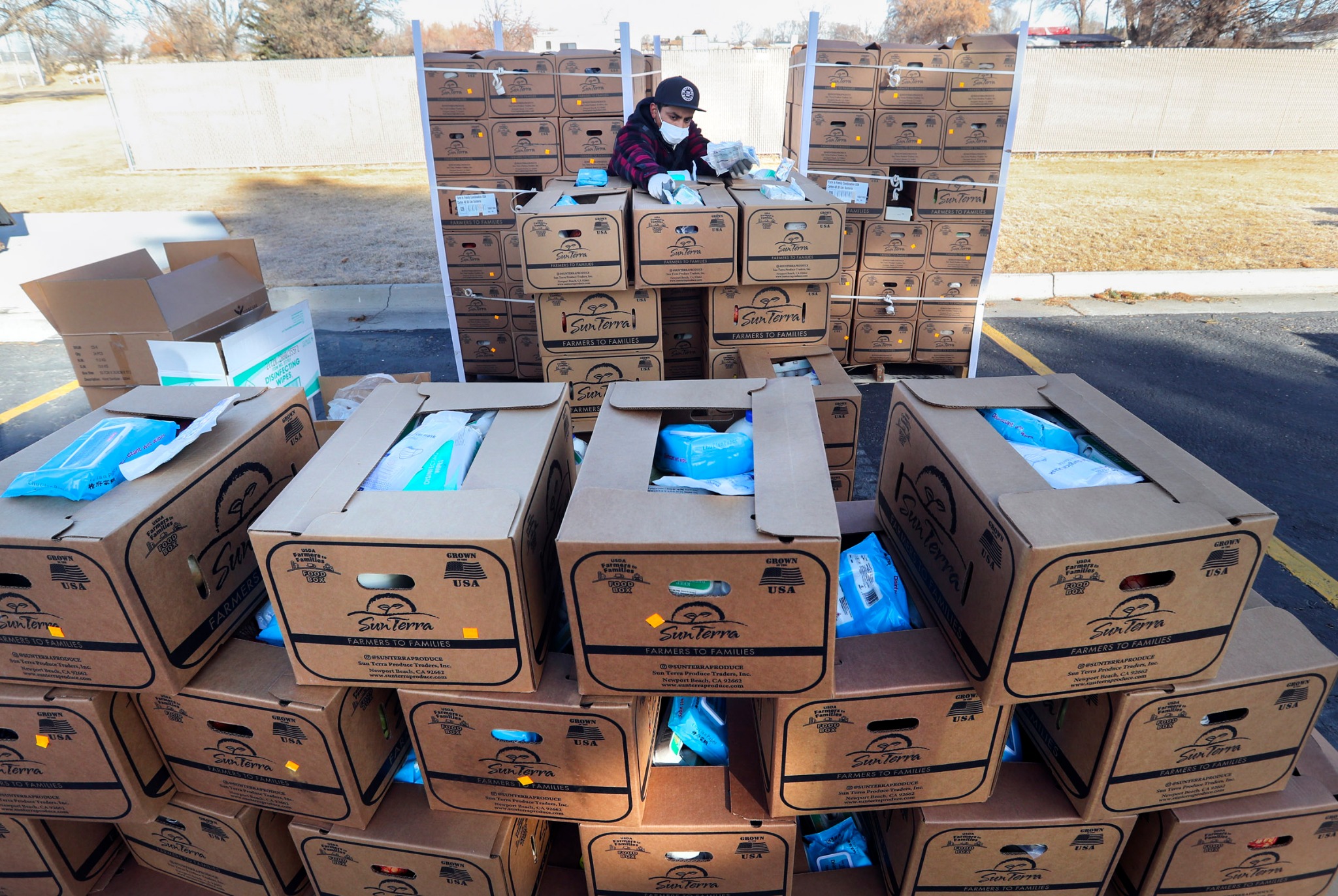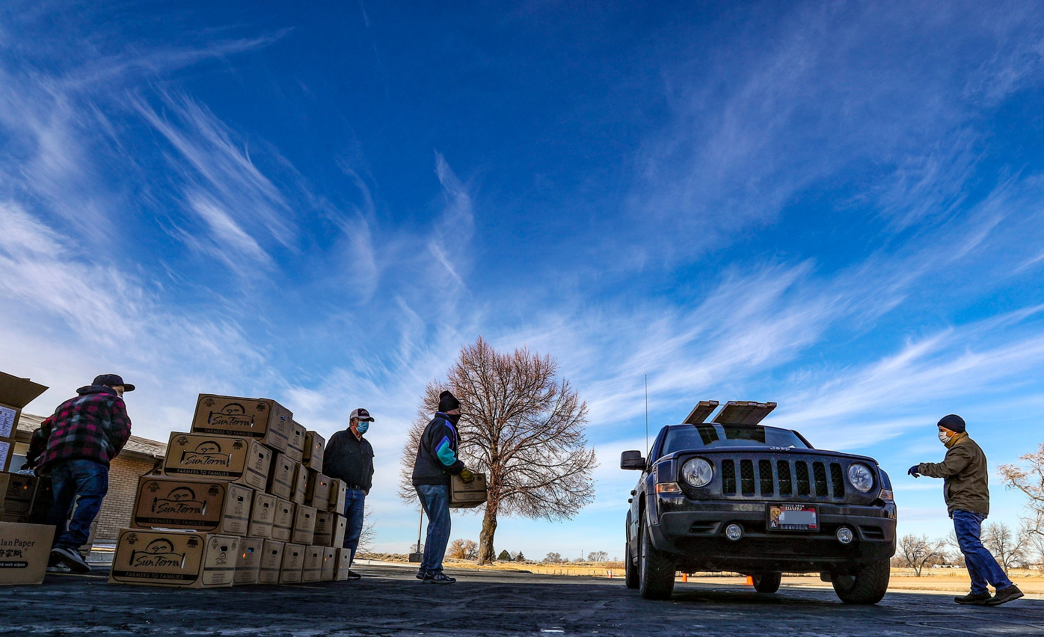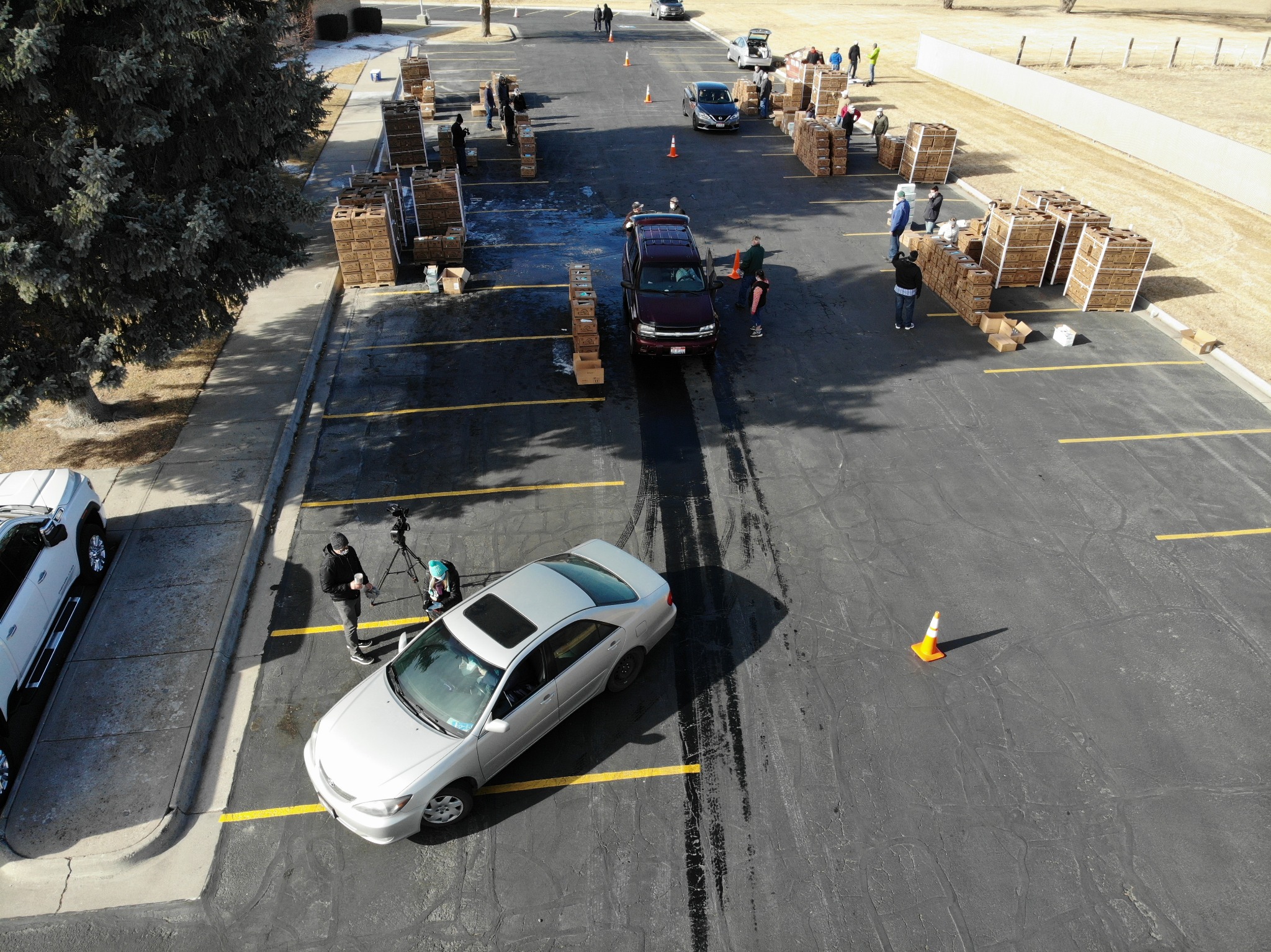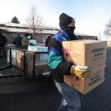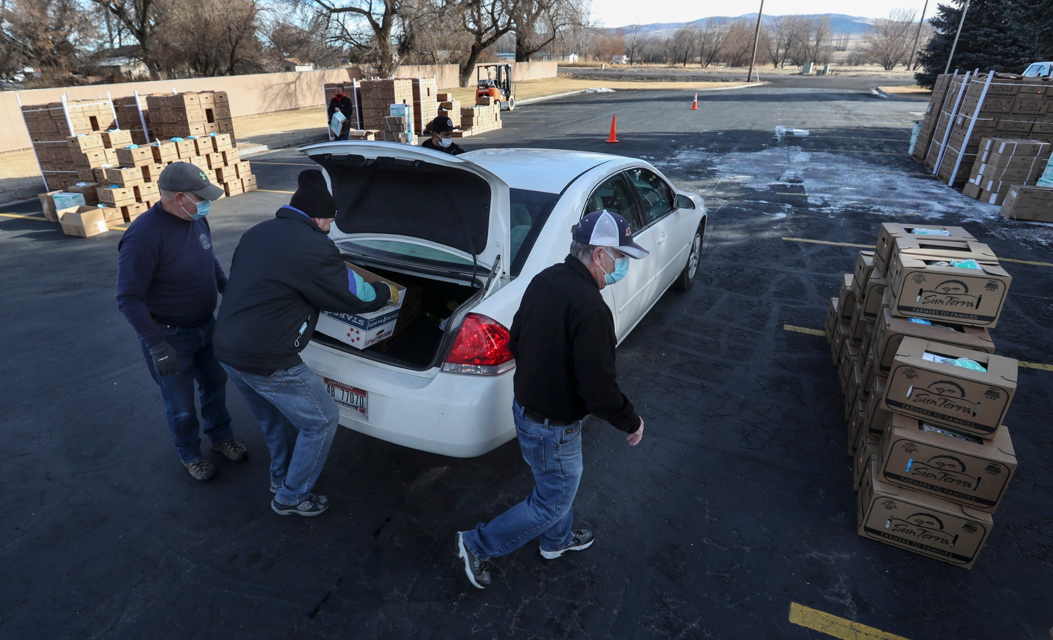 The distribution was scheduled to begin at noon, but cars began showing up several hours early. Volunteers loaded the boxes into cars in the two-lane drive-thru event until all the boxes were given away that evening.
