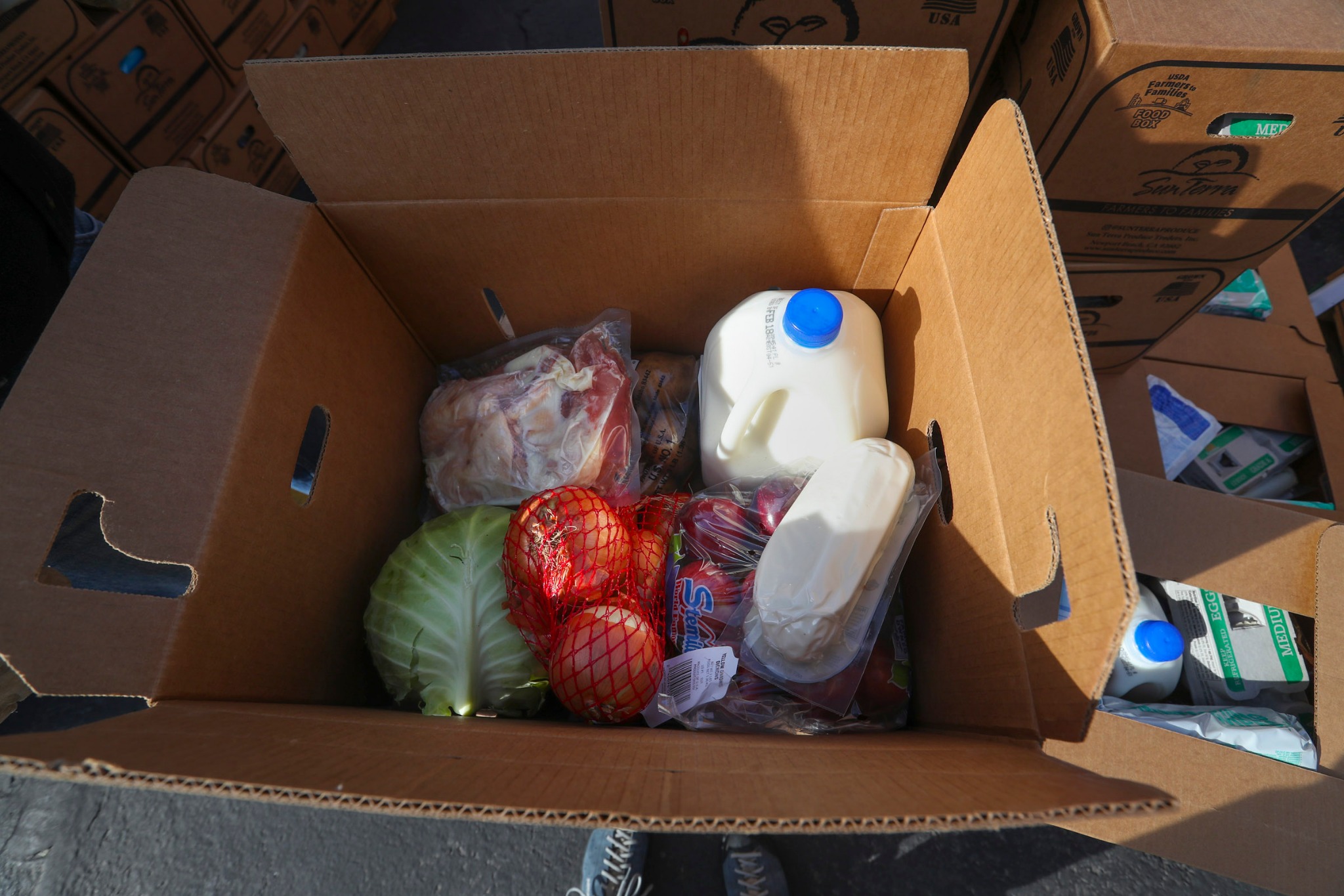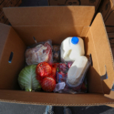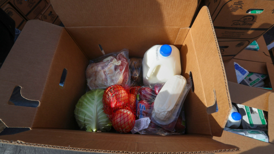 “We have fresh fruits and vegetables, we have cheese, eggs [and] meat. … Just … really the makings for two good wholesome meals, and then some leftovers on top of that for about a family of six,” he said.