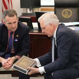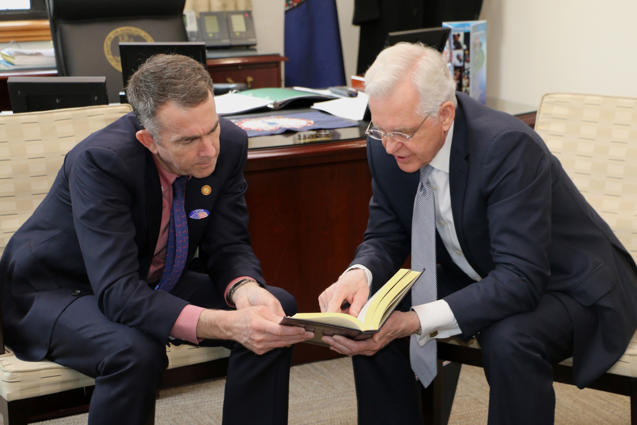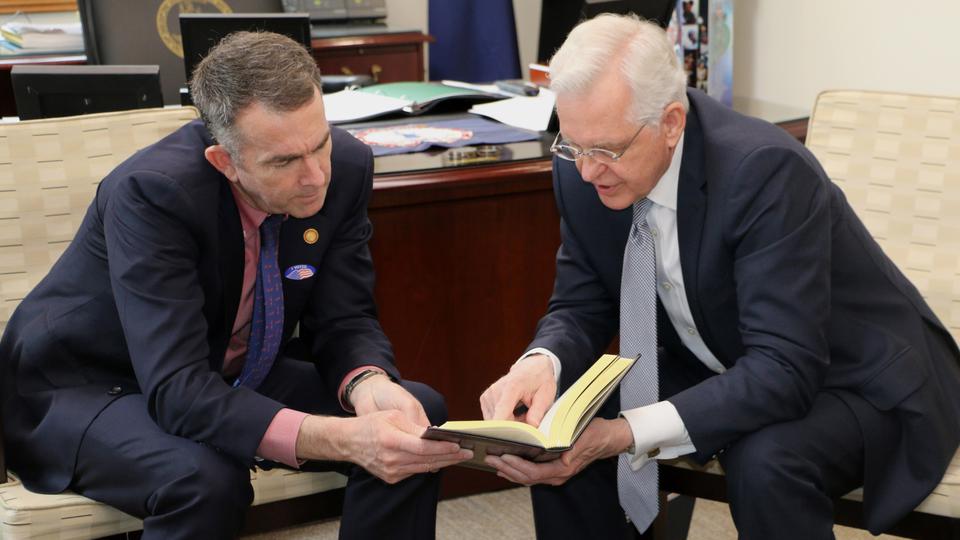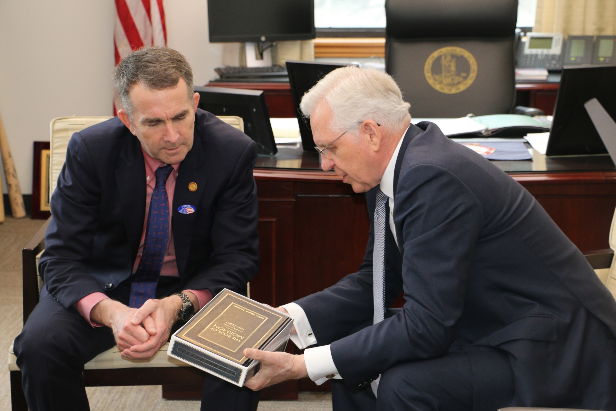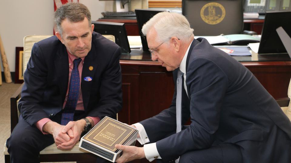 He also presented the governor with information about Northam’s family history and a leather-bound copy of the Book of Mormon.