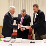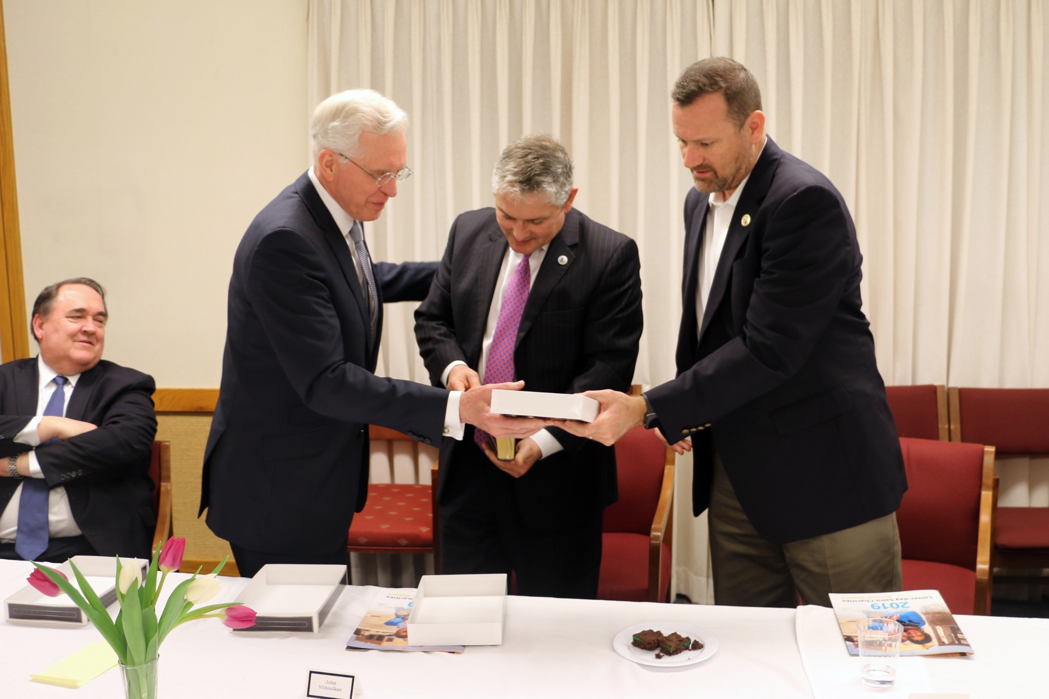 “We have set aside 40,000 pounds of food commodities to come to these groups, represented here today, through the course of this year,” said Elder Christofferson, who was joined by his wife, Katherine; Elder Allen D. Haynie of the Seventy and his wife, Deborah; and Elder Michael M. Dudley, an Area Seventy.