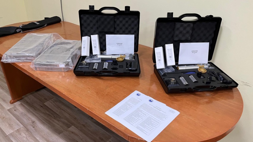 The donation includes a 42 mm-wide dermatome for children and an 80 mm-wide unit for adults. Previously, the center relied on a single manual scalpel, which posed a higher risk of graft complications.